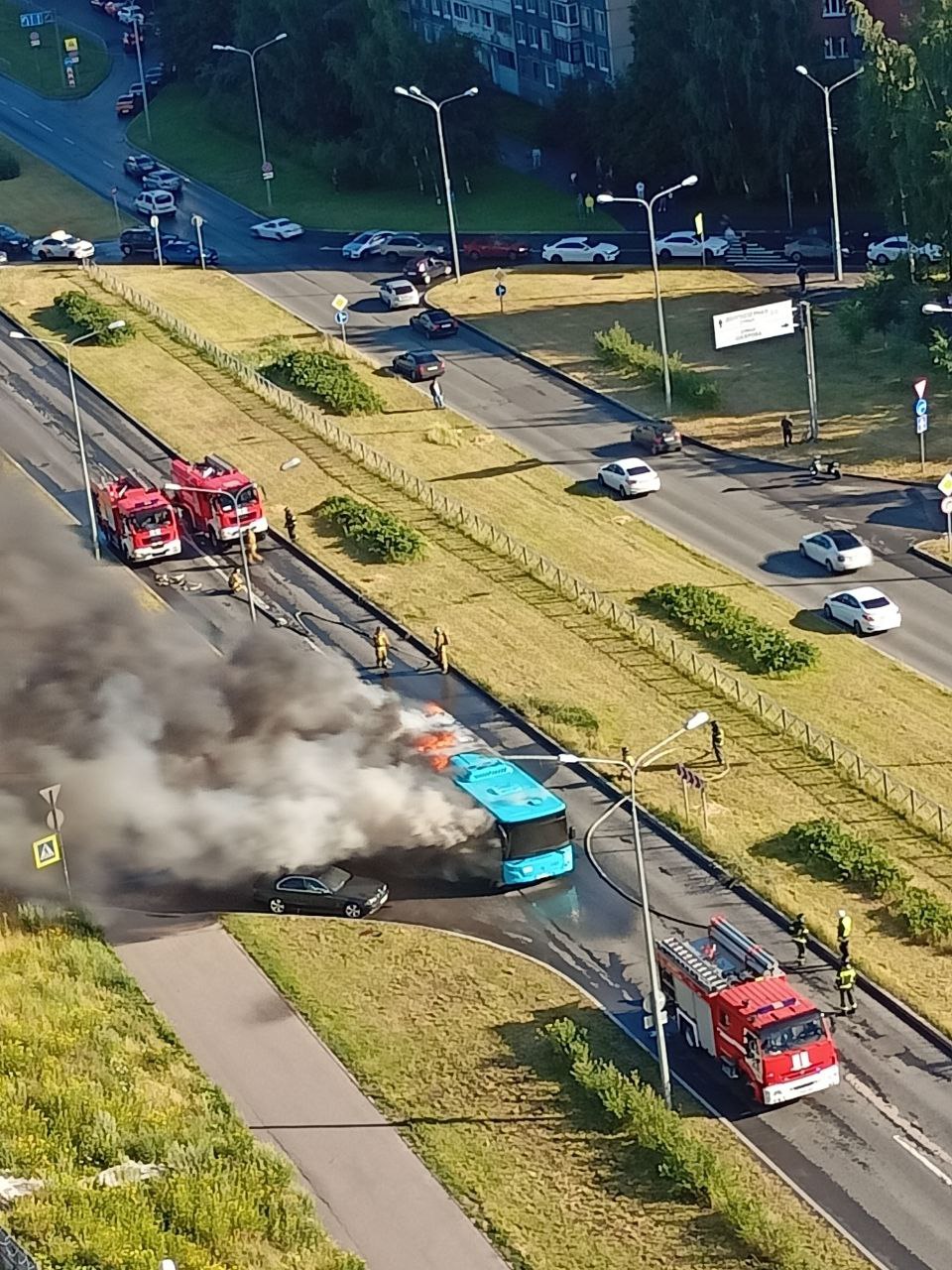 В Петербурге вечером 16 июля в очередной раз загорелся пассажирский автобус, сообщили очевидцы. По словам читательницы «Бумаги», это произошло на углу улиц Королёва и Шаврова.