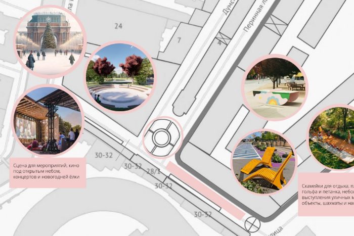 • сцену для мероприятий, киносеансов под открытым небом и новогодней елки;