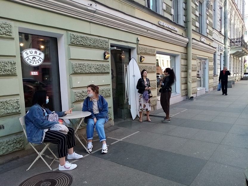 В Петербурге недавно смягчили режим самоизоляции, в городе также запланированы парад Победы и голосование за поправки в Конституцию. При этом многие ограничения из-за коронавируса продолжают действовать: парки и магазины одежды закрыты, заведениям общепита разрешено работать только навынос. Но петербуржцы массового гуляют по улицам и уже сидят с едой и напитками за столиками возле заведений.