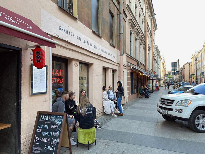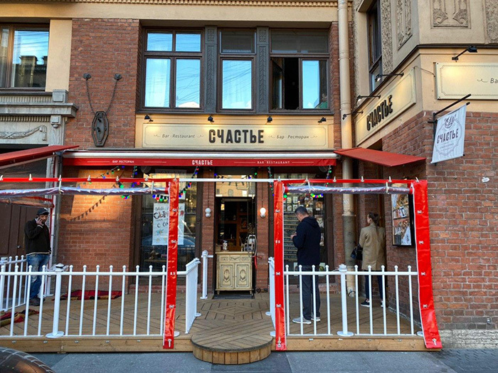 Ресторан «Счастье» на Рубинштейна оборудовал террасу. Но в пресс-службе сети отметили, что «установка террасы еще не означает ее открытие», а заведение работает навынос.