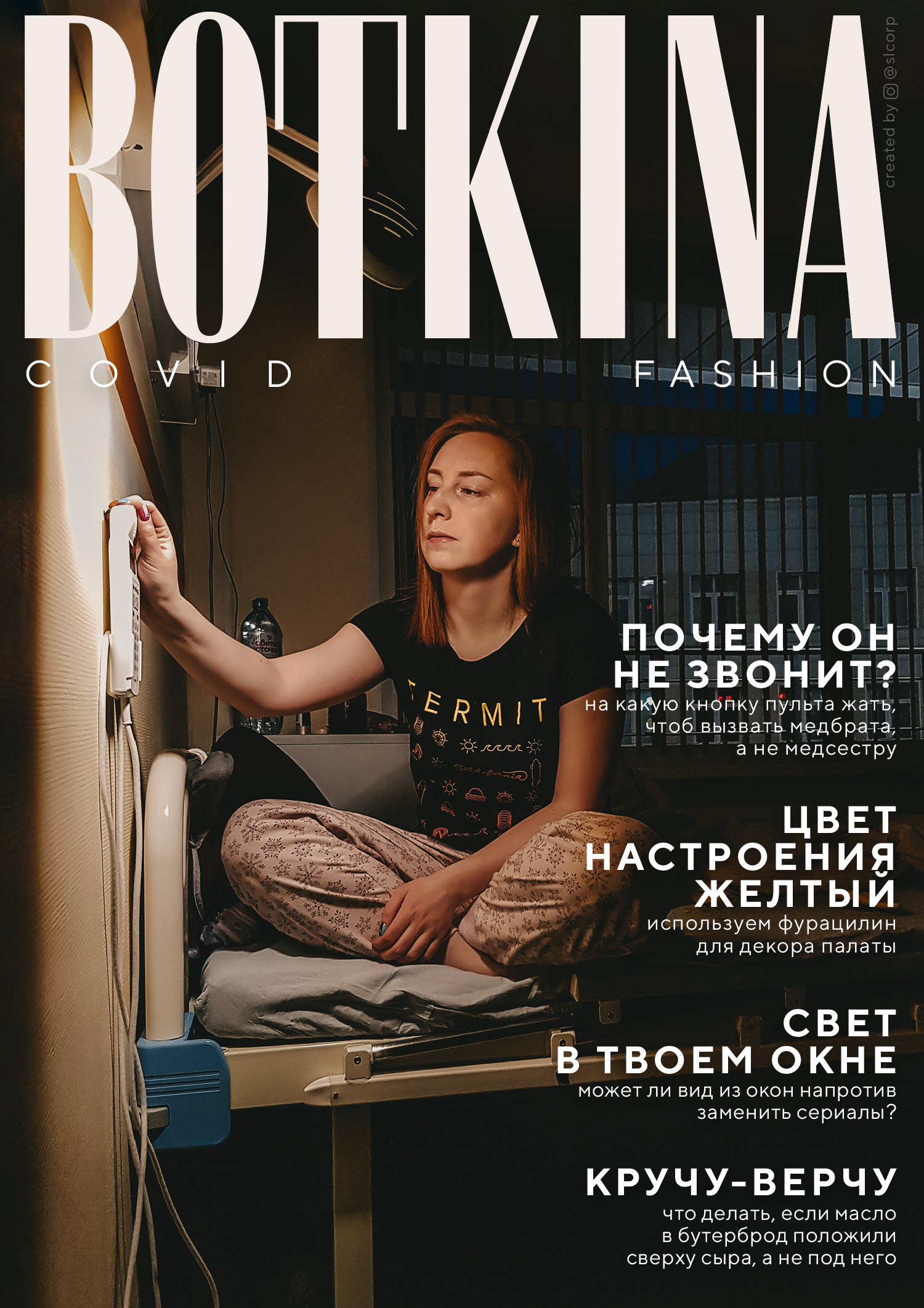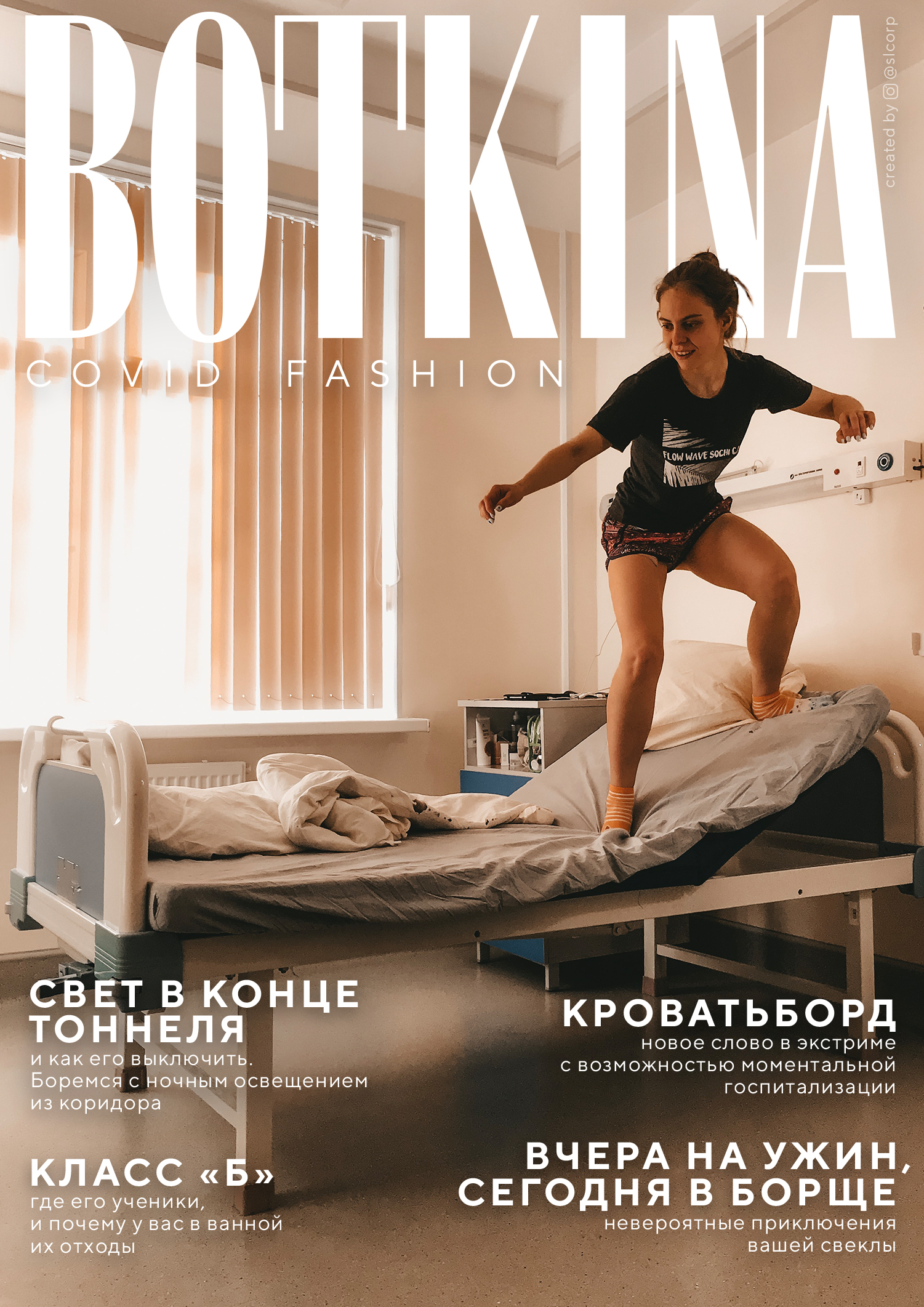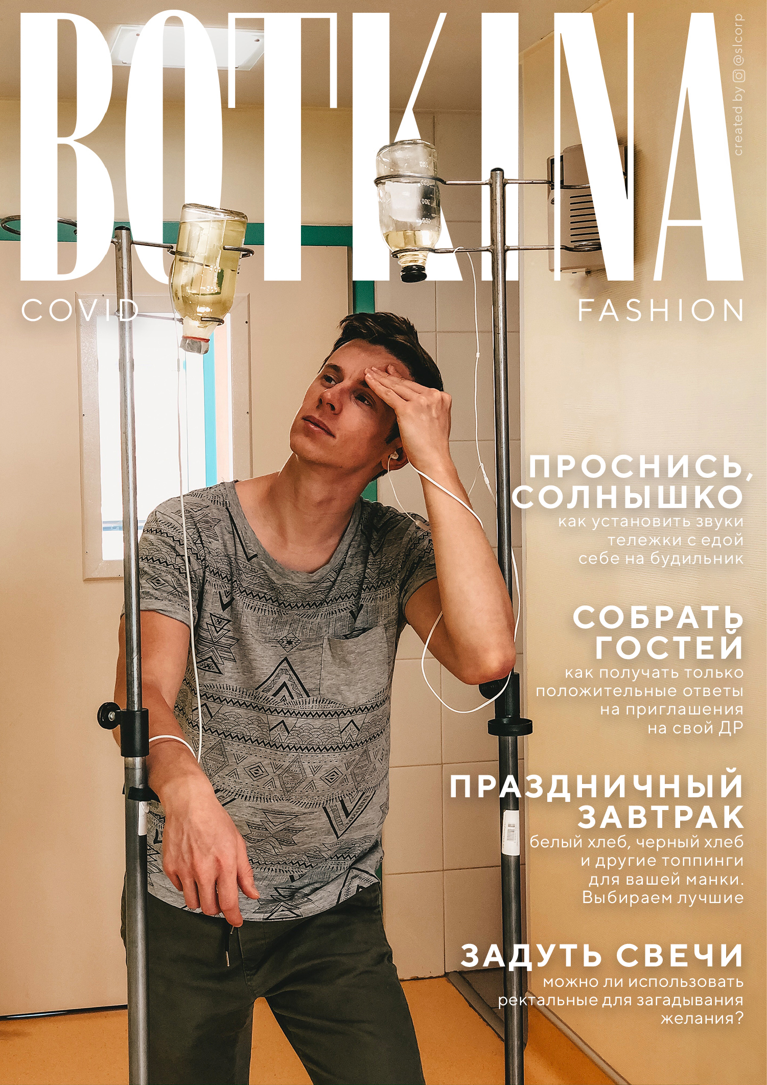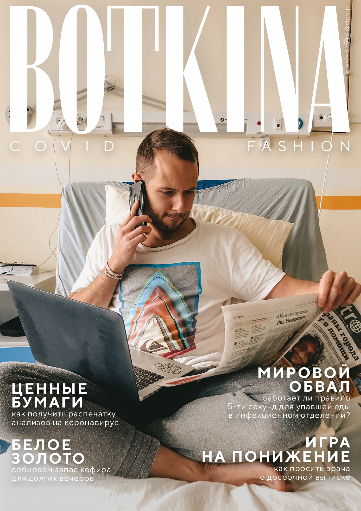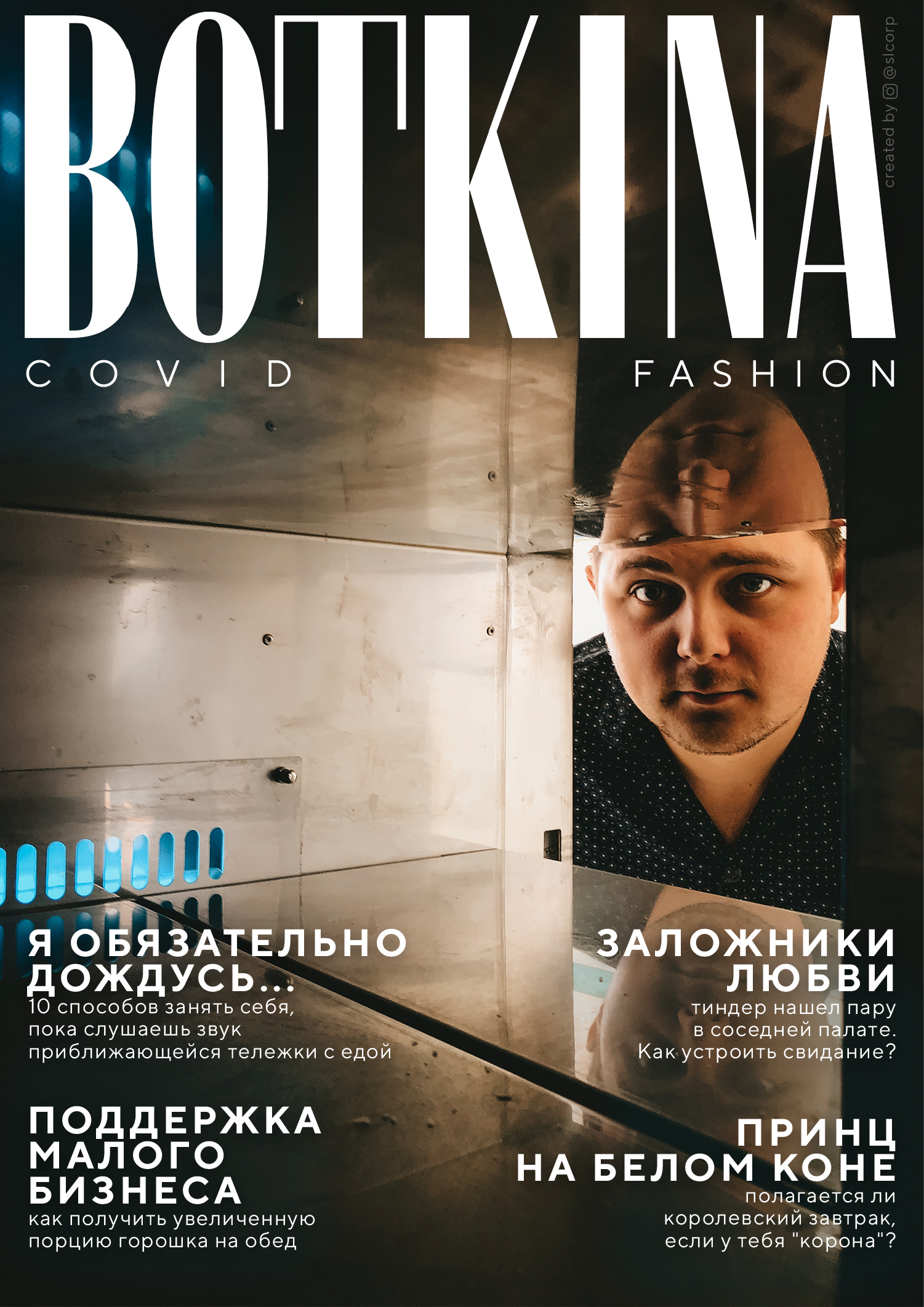 Петербургский дизайнер Тема Иванов, попавший в Боткинскую больницу с подозрением на коронавирус, вместе с друзьями создал несколько обложек для выдуманного глянцевого журнала Botkina Covid Fashion. На них изображены люди в больничных палатах, а вместо заголовков — шутки про карантин и коронавирус.