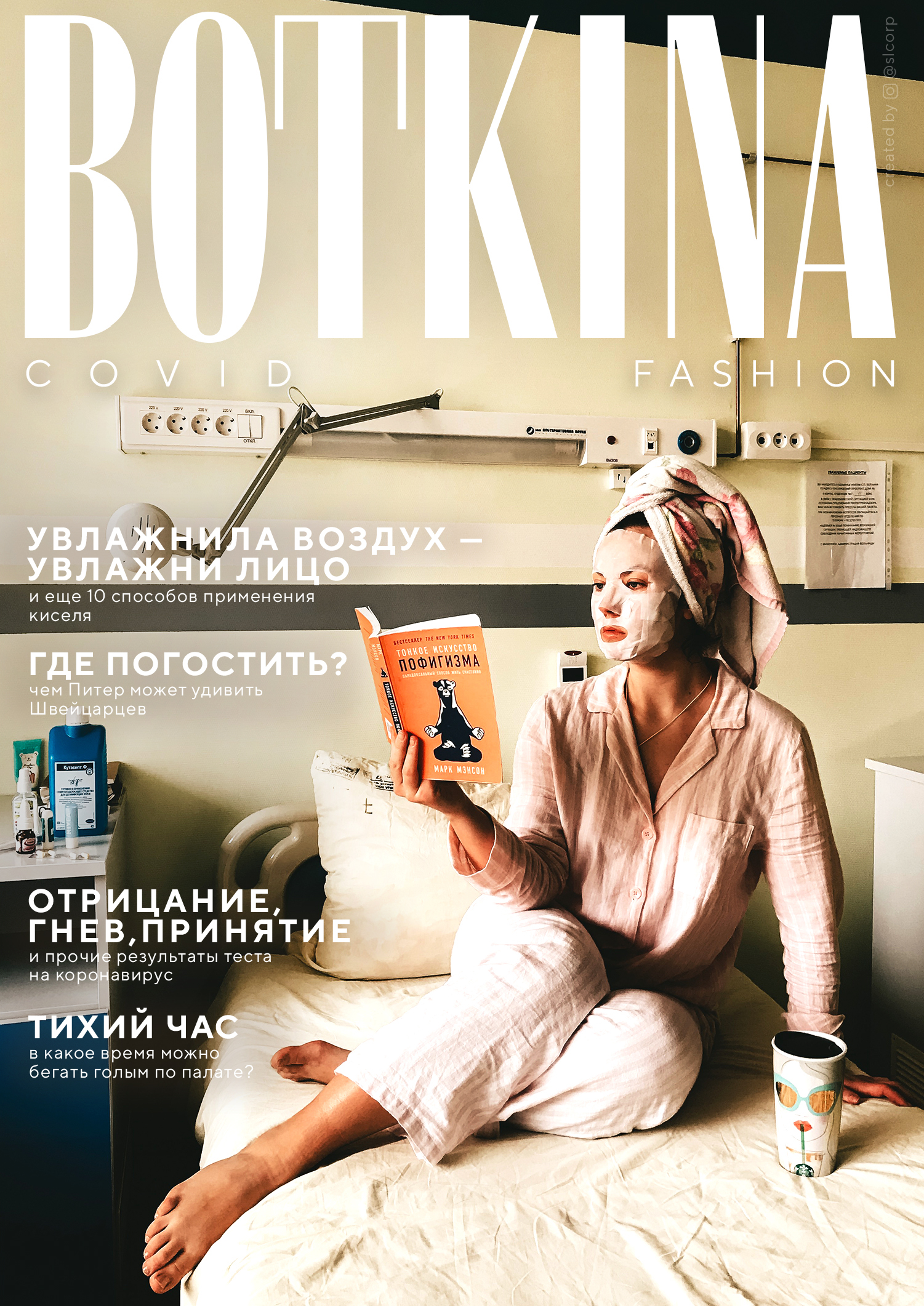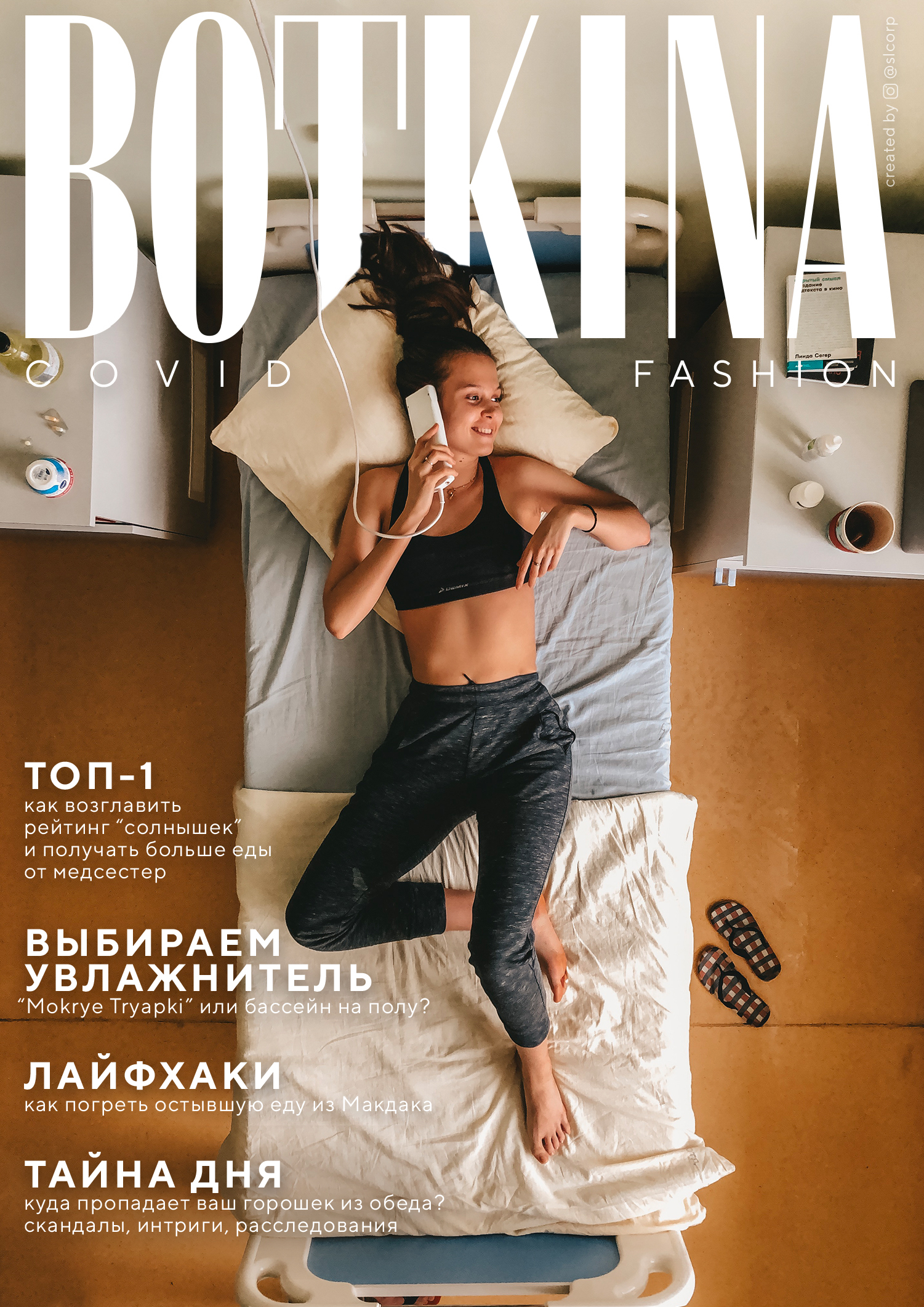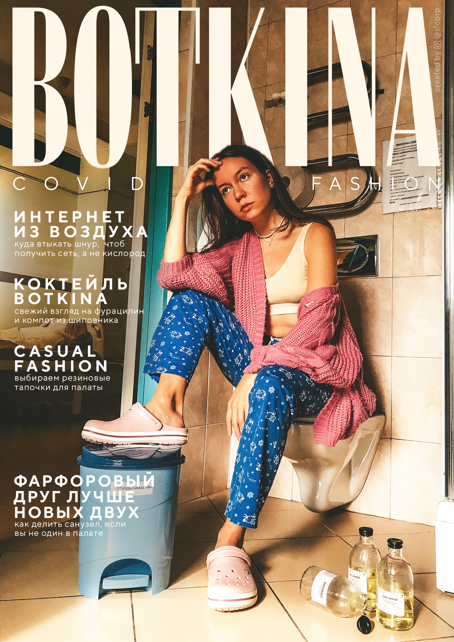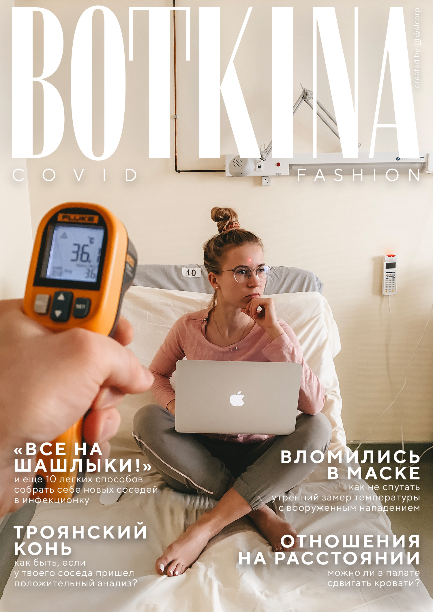 Петербургский дизайнер Тема Иванов, попавший в Боткинскую больницу с подозрением на коронавирус, вместе с друзьями создал несколько обложек для выдуманного глянцевого журнала Botkina Covid Fashion. На них изображены люди в больничных палатах, а вместо заголовков — шутки про карантин и коронавирус.