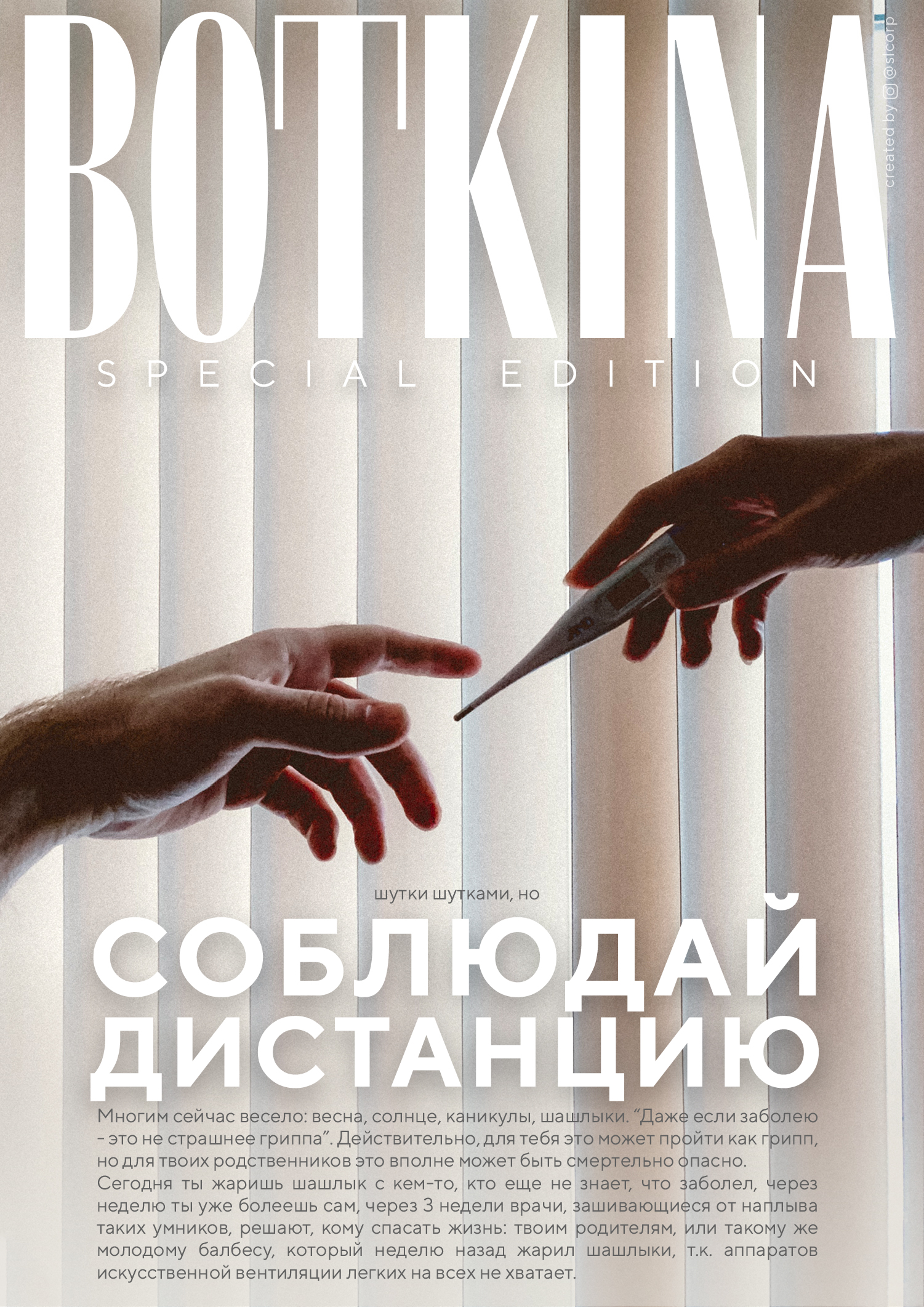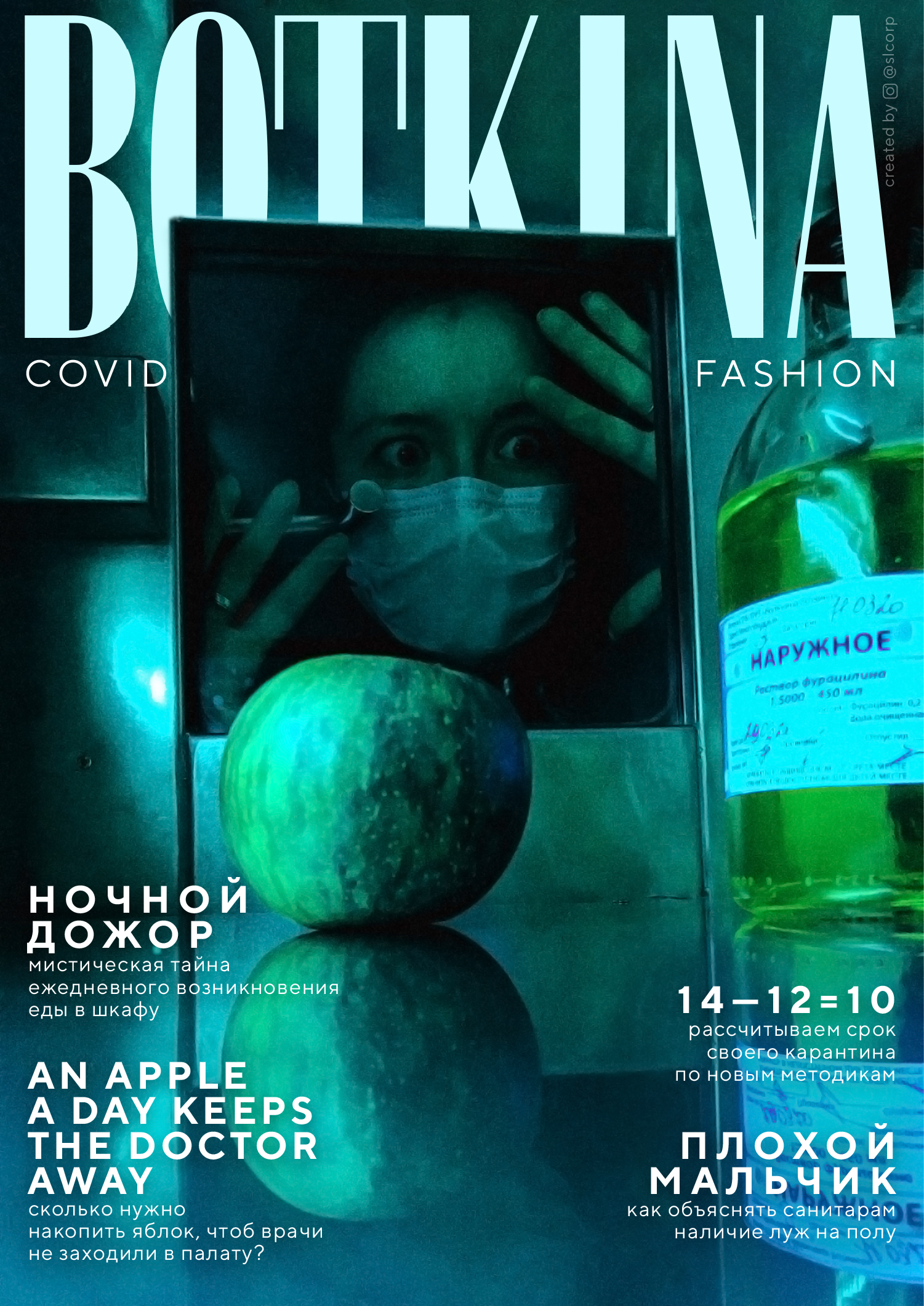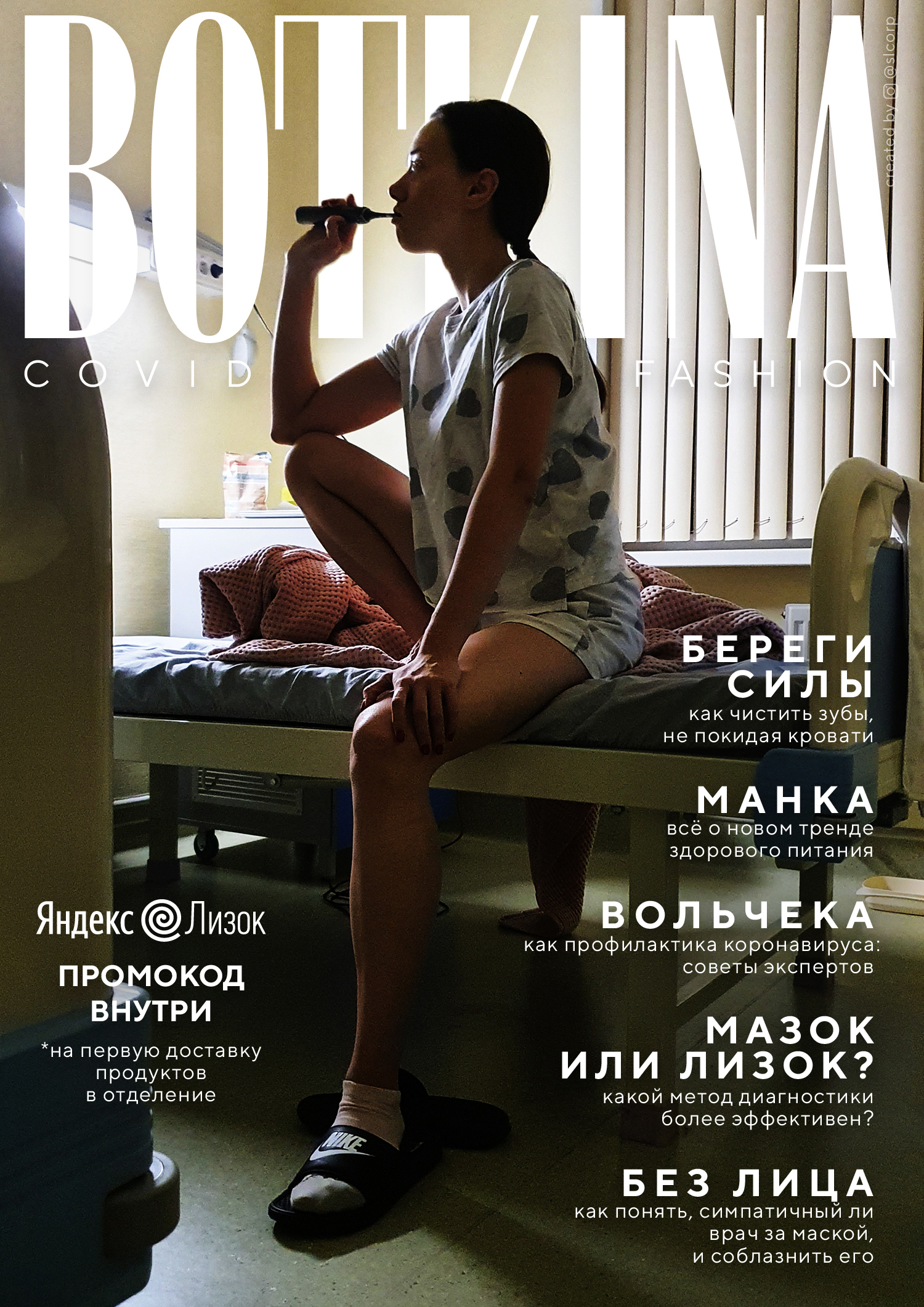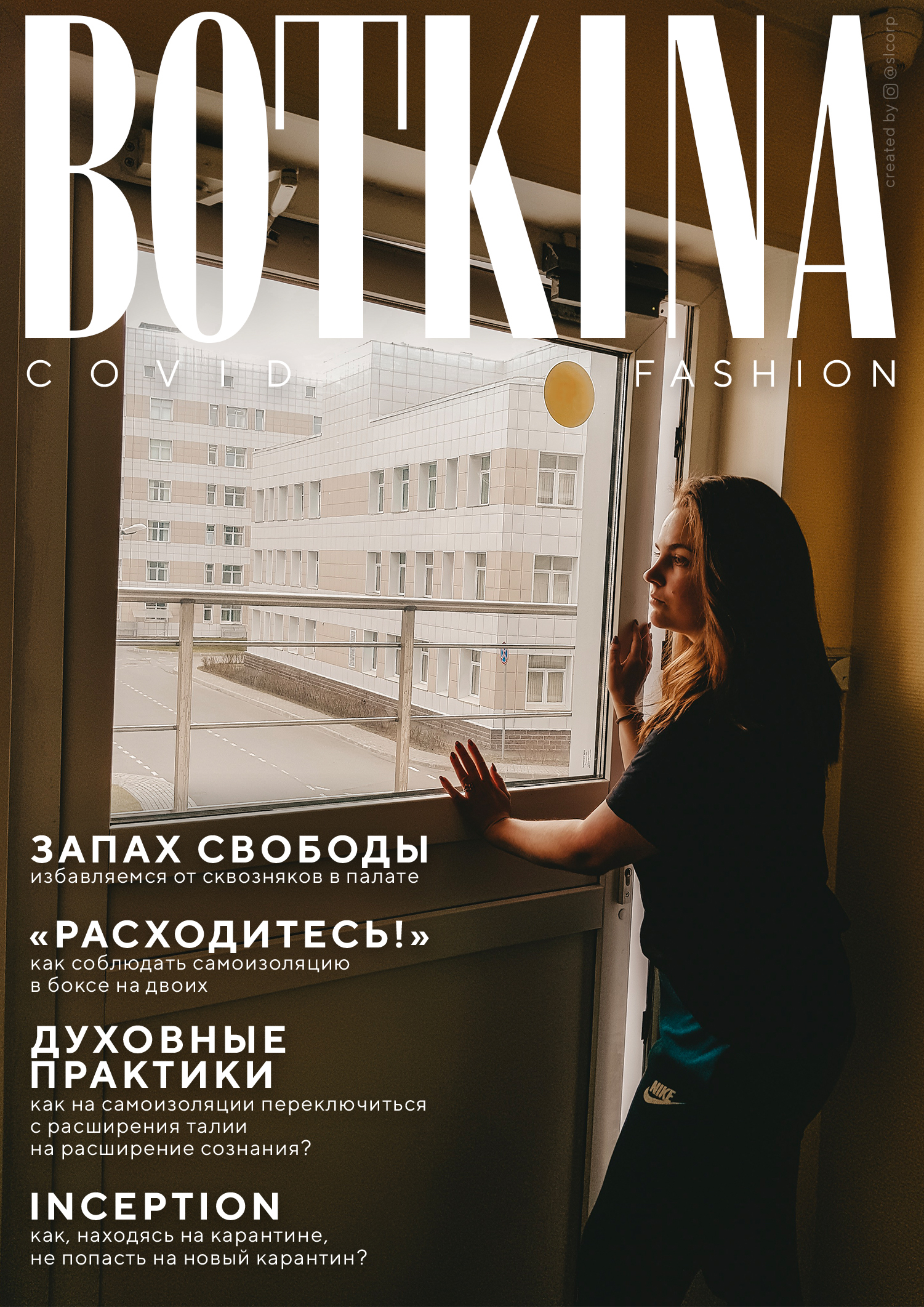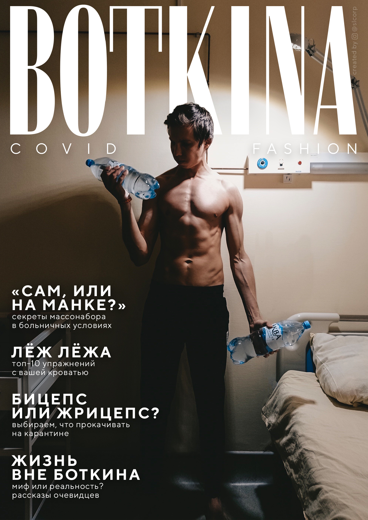 Петербургский дизайнер Тема Иванов, попавший в Боткинскую больницу с подозрением на коронавирус, вместе с друзьями создал несколько обложек для выдуманного глянцевого журнала Botkina Covid Fashion. На них изображены люди в больничных палатах, а вместо заголовков — шутки про карантин и коронавирус.