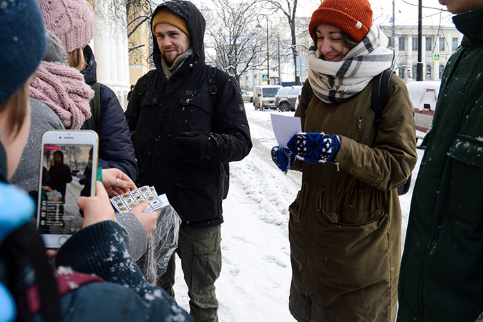 — В прошлом году было 17 участников. Мы вышли в 10 утра, с улицы Репина, где жил художник. Маршрут занял девять часов. К вечеру мы пришли в нашу финальную точку на улице Мира, 3. У нас было несколько остановок на улице с термосами, еще была остановка с обедом — мы заходили в небольшое кафе на станции метро «Пролетарская». Всех участников мы просили взять термос и какой-нибудь перекус.