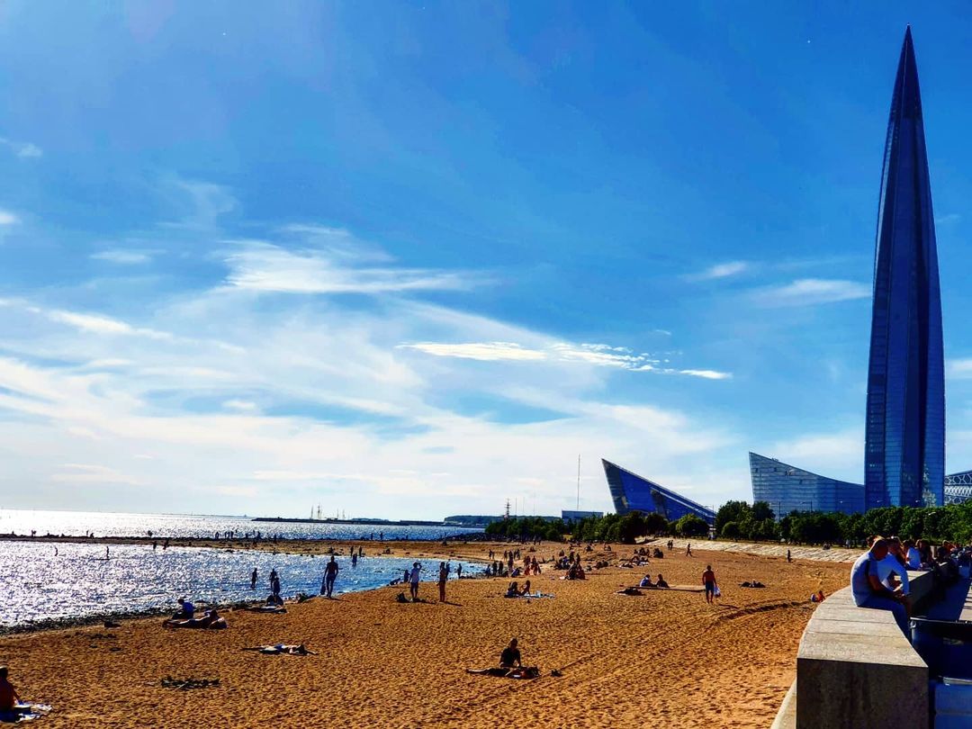 На пляжах в такую погоду ажиотаж. На территории нового общественного пространства в Озерках загорают сотни человек, социальную дистанцию соблюдать там очень сложно.