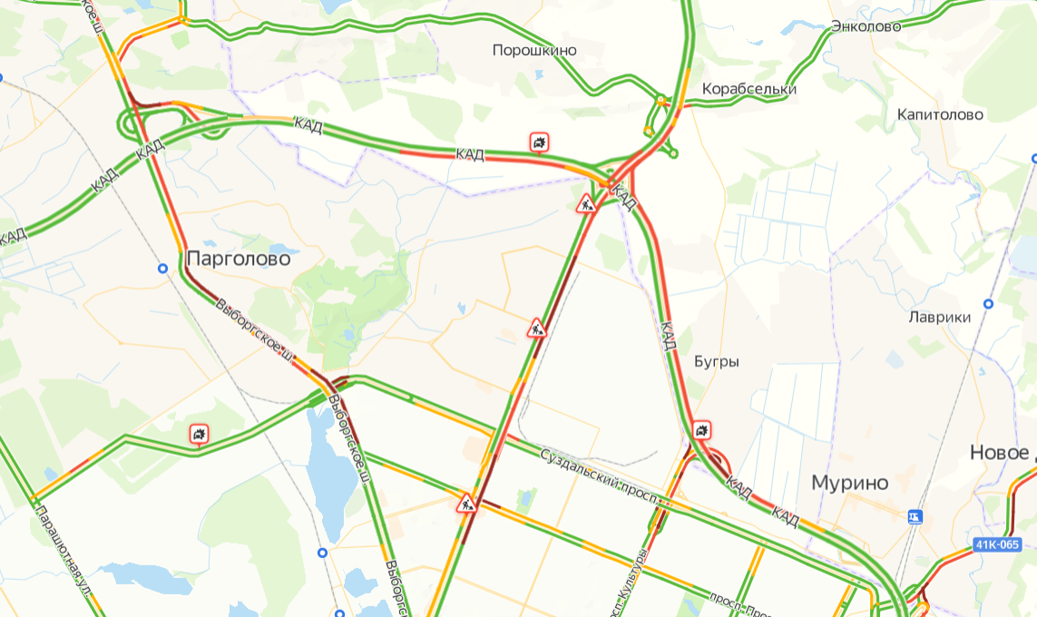 На выезде из города скопились автомобили. Примерно в 13:00 на ЗСД от КАД до Сестрорецкого шоссе образовалась пробка длиной 13 километров, сейчас машины стоят на Выборгском шоссе и проспекте Энгельса.