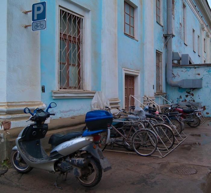 Велостоянка у проходной завода Пикалёво