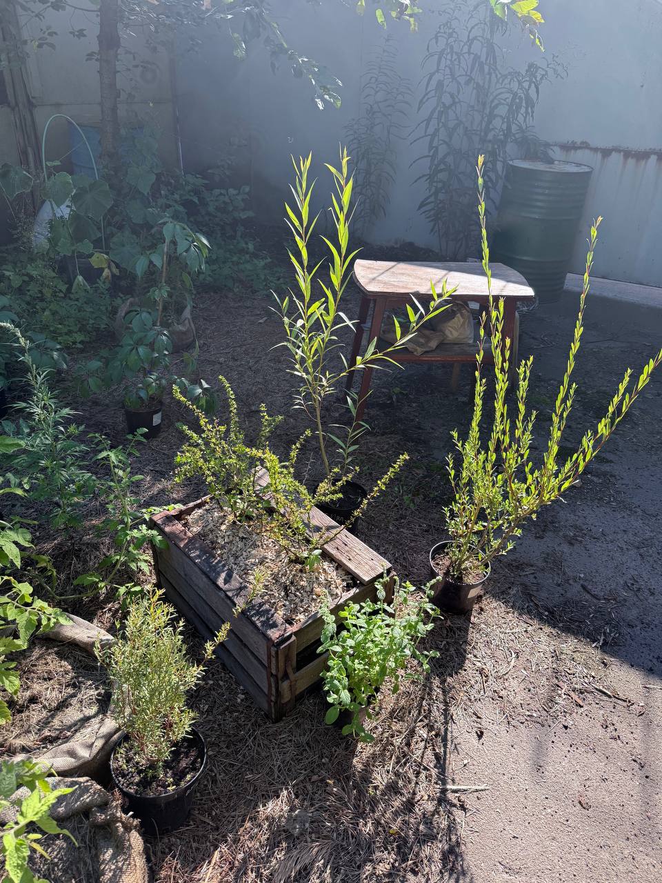 Пока основной садик у склада защищен тем, что находится в непроходном месте. Случайные люди там не появляются. За год ничего не сломали. Летом, если кто-то из моих друзей туда попадает, там классная атмосфера: стол, стул, можно чай попить.