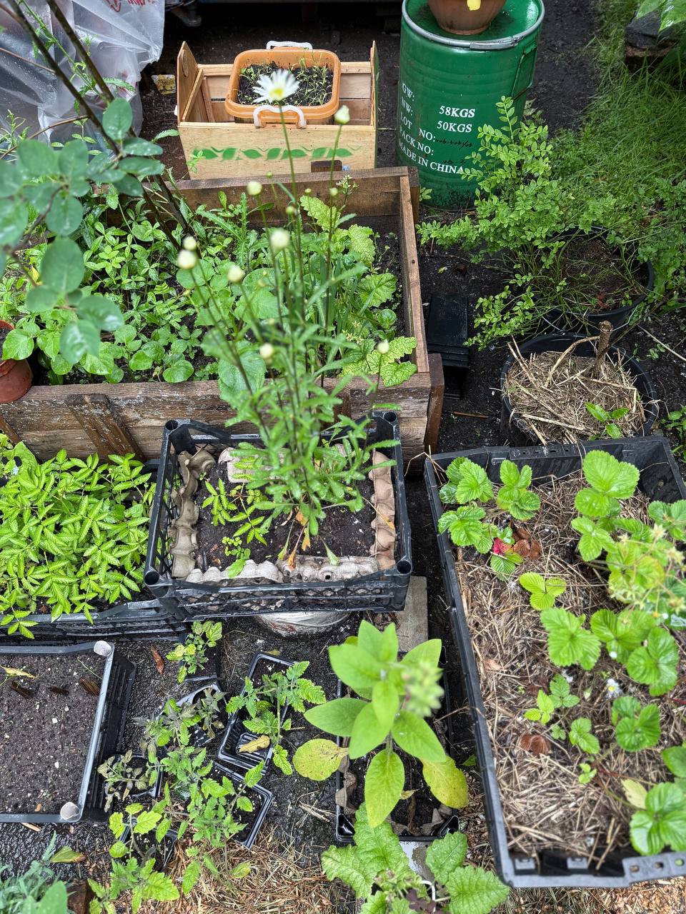 Затем я начал сажать растения в контейнерах, кадках, горшках, ящиках. Сначала добавил пару кустов смородины и жимолости, затем — помидоры и клубнику. Летом выглядит классно: куча насекомых, всё опыляется — такой зеленый микромир.