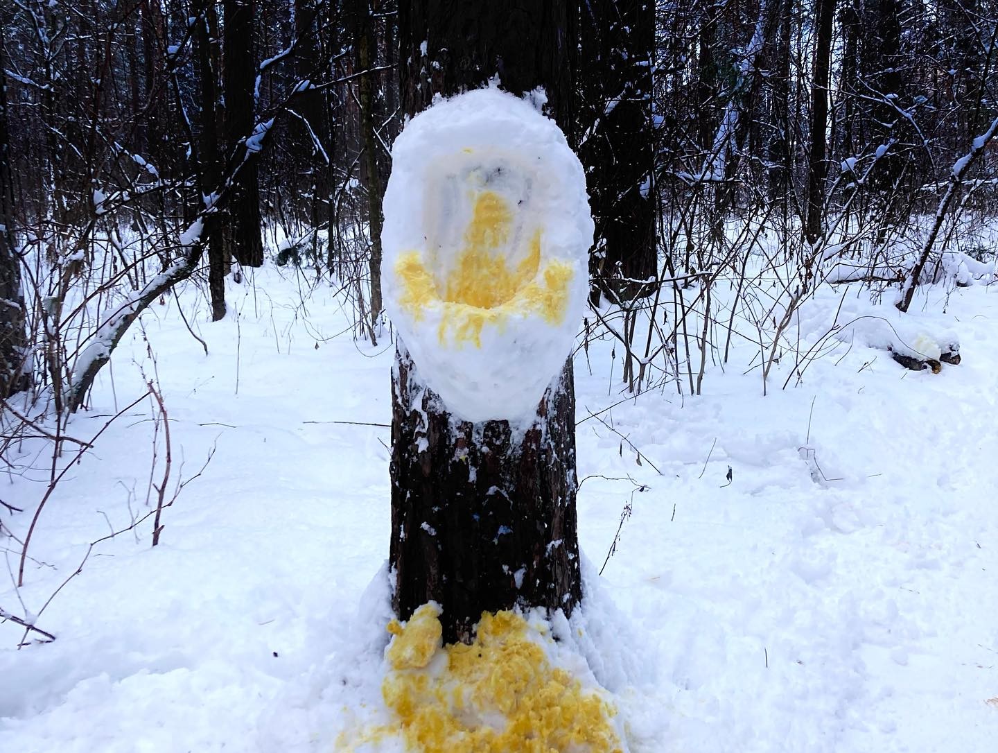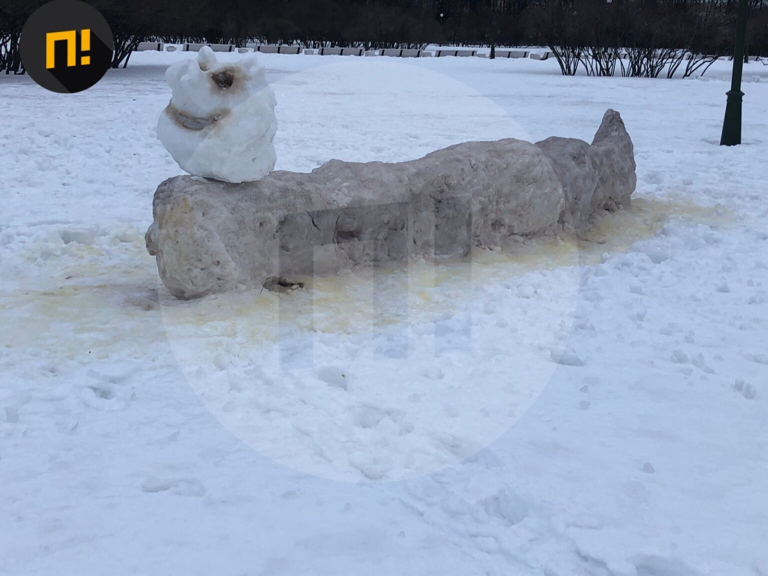 «Неустановленное лицо… осознавая противоправность своих действий, умышленно, цинично, безнравственно, из хулиганских побуждений, пренебрегая общепринятыми правилами и нормами поведения, установленными в обществе, разместило арт-объект из снега в виде гигантских фекалий в луже желтого цвета, таким образом своими умышленными действиями осквернило место захоронения умерших».