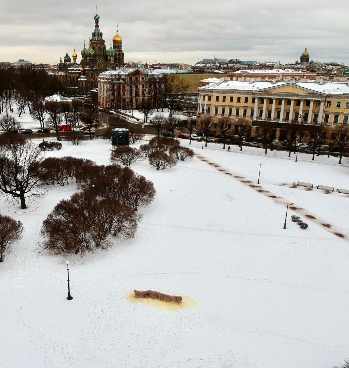 В комитете по благоустройству Петербурга рассказывали изданию «Подъем», что убрали арт-объект с Марсова поля 15 января. В пресс-службе ведомства при этом заявили, что фигура на самом деле выглядела иначе, — и приложили фотографию.