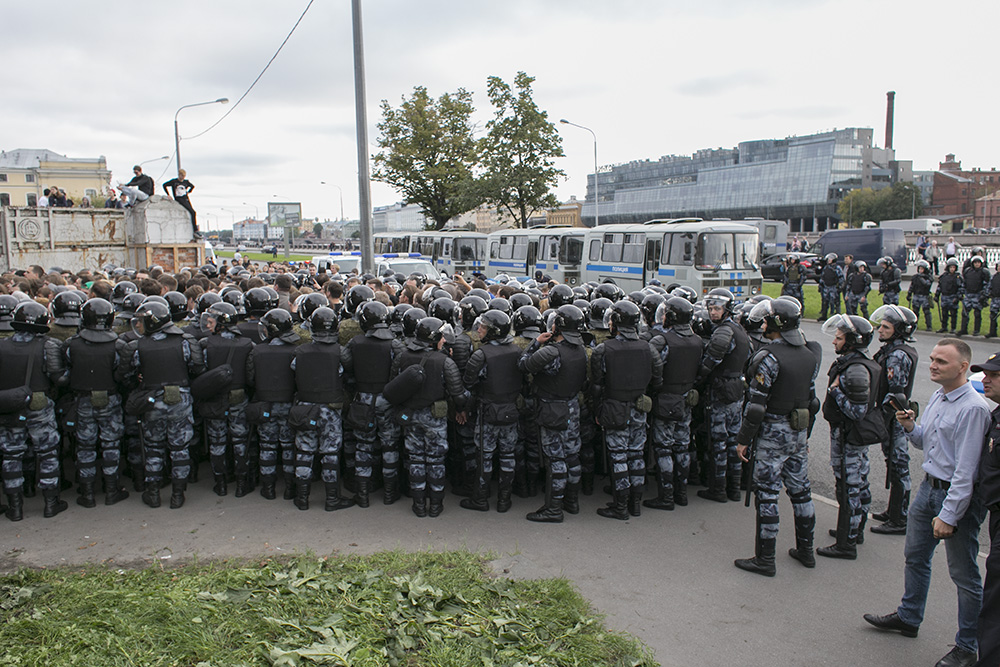 В финале акции на Пироговской набережной протестующие и журналисты, в том числе корреспонденты «Бумаги», попали в оцепление. Наш корреспондент, предъявив пресс-карту и нарукавник «Пресса», попросил выпустить его, но сотрудник ОМОНа ответил: «Найдите полицейского и обратитесь к нему. Мы не можем вас выпустить, мы ничего не решаем». На требование не мешать журналистам работать омоновцы отвечали, что они «тоже работают».