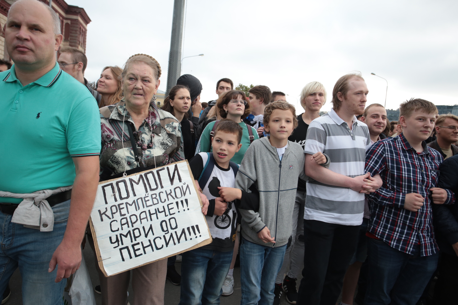 — Мы одноклассники. Решили пойти, потому ***** (нафиг — прим. «Бумаги») пенсионную реформу. Родители отпустили без проблем. Одноклассники не пришли, у них портреты с Путиным. Если [нас] задержат — нестрашно, — рассказал один из них корреспонденту «Бумаги».