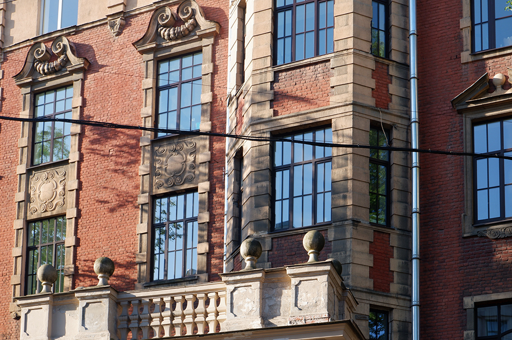Ломаные кровли, башенки, причудливые барельефы — стильный дом для ценителей европейской романтики прямо у Ботанического сада. Здание на Аптекарском проспекте, 6 — одно из первых в Петербурге, где можно было не только снять, но и купить квартиру. Его построили в 1911–1912 годах молодые архитекторы Роберт Ульман и Андрей Оль для жилищного кооператива — Каменноостровского товарищества постоянных квартир. Два архитектора вместе учились в Институте гражданских инженеров, для обоих эта работа стала первым самостоятельным заказом в статусе дипломированных зодчих. Соавторы были вознаграждены за труды не только деньгами, но и квартирами. Роберт Ульман получил квартиру на верхнем, седьмом этаже, Андрею и Римме Оль достались апартаменты на более престижном шестом.