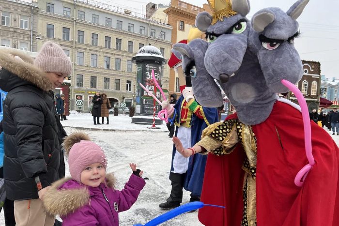 В Петербурге открылась рождественская ярмарка. В этом году она проходит на Манежной, Конюшенной и Дворцовой площадях. Темой ярмарки, как и в прошлому году, стала сказка «Щелкунчик и мышиный король». Для посетителей впервые разместили QR-коды, которые ведут к сценам балета Чайковского.