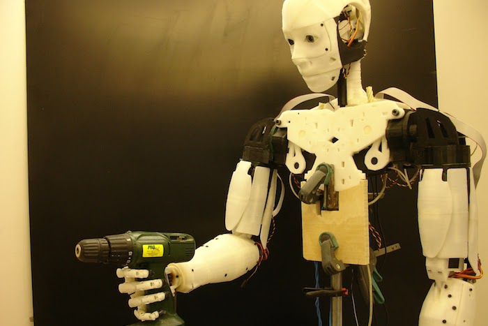 — Проект InMoov появился в 2012 году, когда я купил 3D-принтер. Моя жена была против этой покупки и все время говорила: зачем тебе это, мол, ты каких-нибудь маленьких кроликов будешь на нем печатать только. Однако вышло нечто большее. InMoov — это проект робота, который на 95 % напечатан на 3D-принтере и который может быть воспроизведен любым человеком в домашних условиях. Поскольку это open-source-проект, то в мире уже существует около 120 клонов: есть один в России, в Испании, Германии и так далее. Суть заключается в том, что мы можем создать такого робота и запрограммировать его как угодно. Проект начался с того, что я напечатал руку, которая состоит из ладоней и пальцев, и разместил проект в интернете. Там появилось очень много людей, которые им заинтересовались, и проект руки был распечатан 80 тысяч раз. Затем я запустил проект My Robot Labour, главной задачей которого стало сделать так, чтобы эта рука функционировала как человеческая.