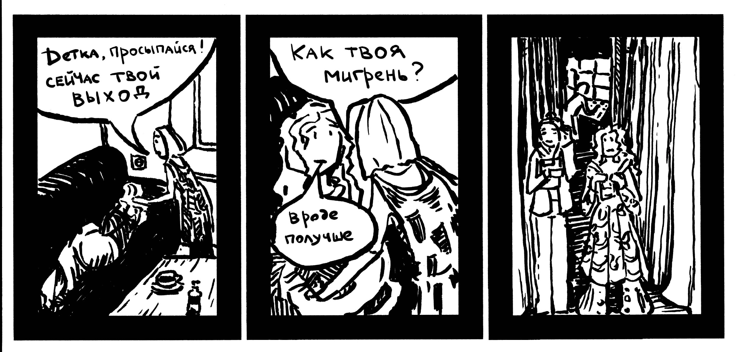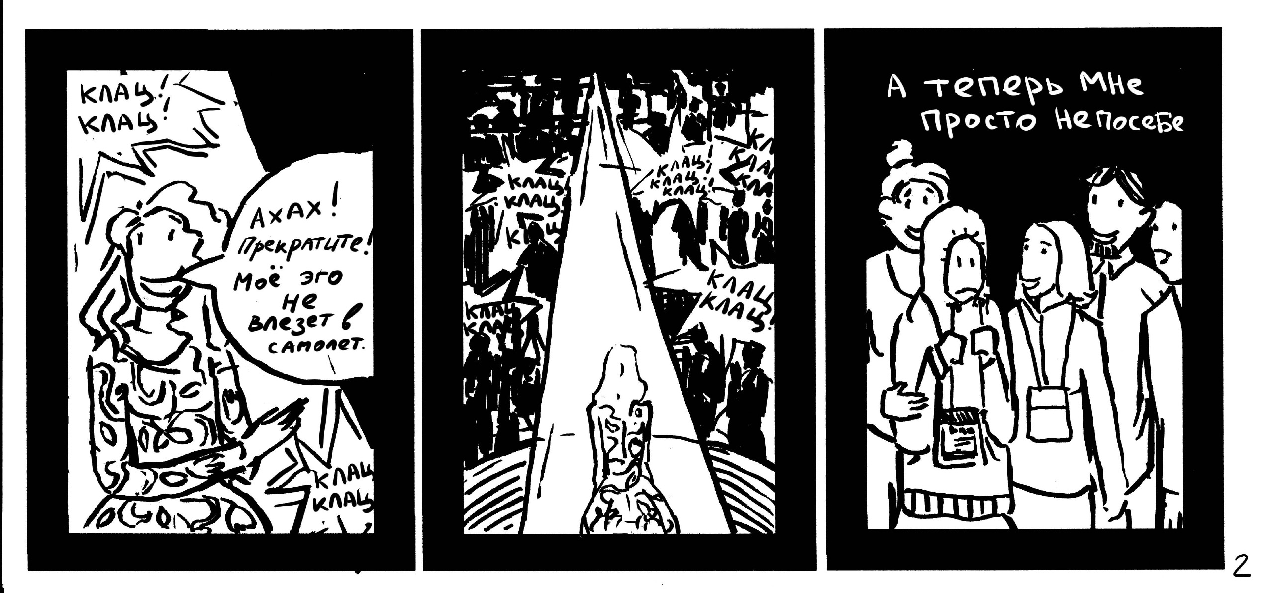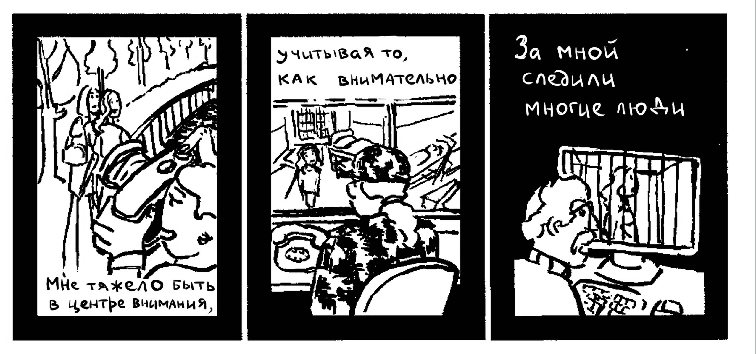 Поэтому пришлось погружаться в воспоминания и просто картинка за картинкой, страница за страницей, рисовать, как всё происходило. Я восстанавливала всю историю: что я подумала в тот момент, что почувствовала. Это в общем-то один из способов работы с травмой при ПТСР — когда человек, может быть, впервые рассказывает свою историю, облекает ее в слова. Я это сделала и мне стало легче.