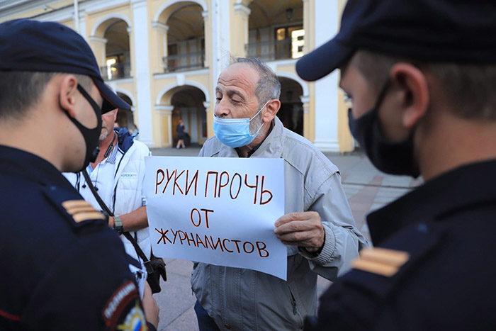 — Я пришел в поддержку российских журналистов. Журналиста Сафронова задержали по беспределу, как и многих журналистов, его, видимо, сейчас арестуют и будут судить совершенно непрозрачным закрытым судом. К сожалению, в последнее время мы убеждаемся в том, что если раньше журналисты — «четвертая власть» — были группой людей, которых все-таки не трогали и давали им работать, то сейчас этого нет. Видимо, новая Конституция, обнуление — новая практика власти.