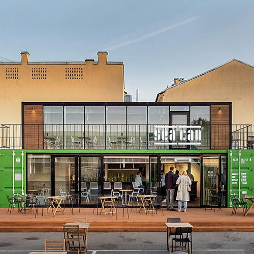 — Название оправдано не только конструкцией здания в форме контейнера, но и предлагаемой кухней. В меню — креветки, кальмары, раки, мидии. Пространство ресторана (буду называть его рестораном) имеет три зоны: основной зал с баром и кухней, терраса и второй этаж. Персонал максимально приветлив и участлив. Внутренний дворик рынка уютен и мил. Всё вместе располагает к ленивым посиделкам выходного дня.