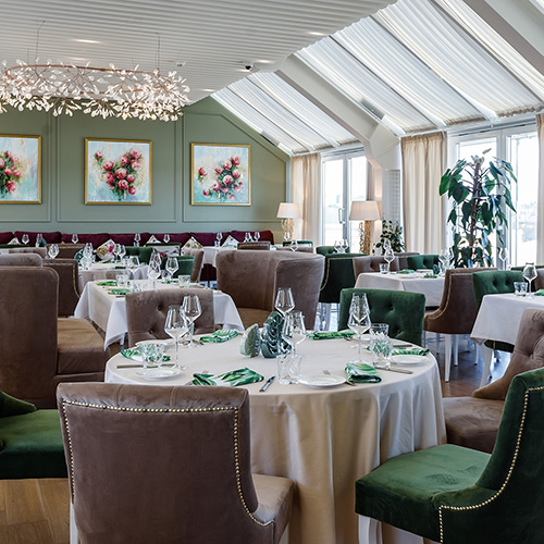 — Место абсолютно новое, уютное, красивое, с чарующим видом на самые яркие достопримечательности. Александринский театр как на ладони, шпиль Петропавловской крепости, Спас на Крови — и море любимых питерских крыш. Аккомпанемент к виду на город — максимально приятный интерьер, имитирующий современный сад и не перекрывающий вид на бескрайнее небо. И конечно, отличная кухня от мастера своего дела Владимир Довалго.