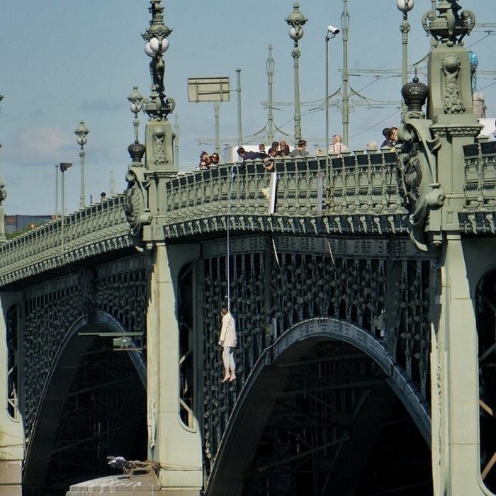 Август 2020 года. Павел подвесил себя к опоре Троицкого моста в Петербурге, а затем спрыгнул с него.