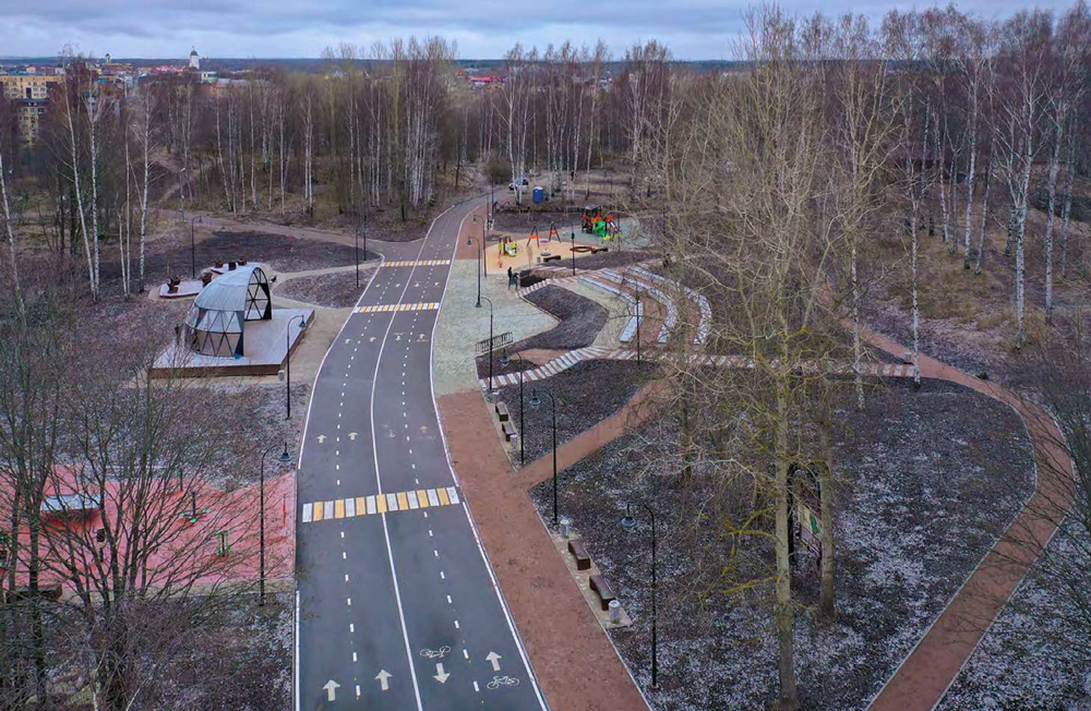 Пространство во всеволожском микрорайоне Бернгардовка создали рядом с двумя детсадами и школой. Территорию разделили на три части: участок для отдыха, прогулочную зону и детскую площадку. Там же обустроили тротуары, провели озеленение и установили велопарковки и качели. Позднее в пространстве обещают создать тренажерную зону, футбольное поле, площадки для волейбола и баскетбола.
