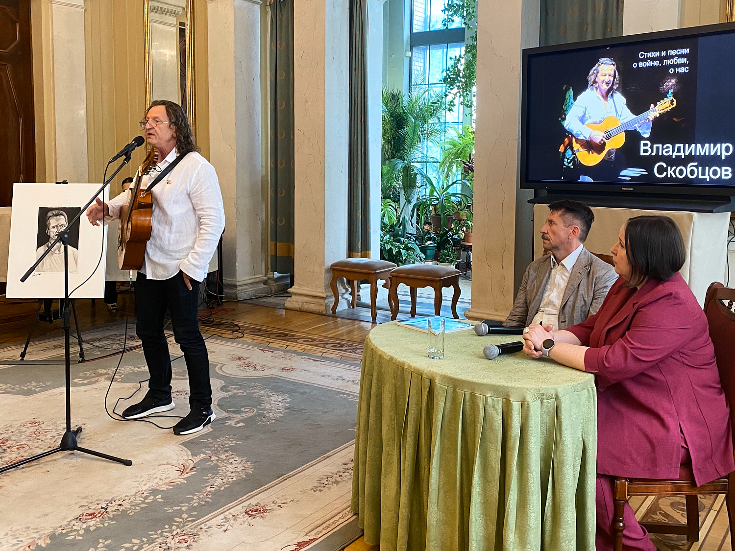 Для первых посетителей выставки включили короткометражный фильм про Виктора Бута, также спел бард и председатель клуба авторской песни «ДНР» Владимир Скобцов.