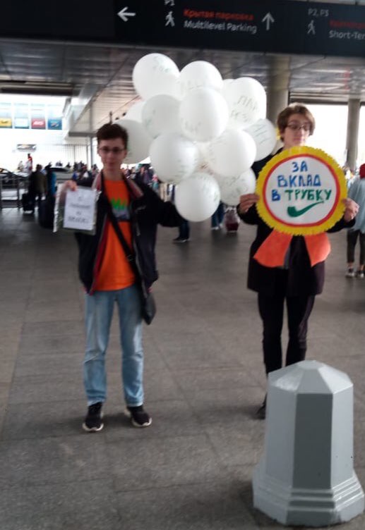 10 мая Максим Резник с семьей возвращался из Праги. В аэропорту их встретили молодые люди с плакатами и воздушными шарами с надписями «План» и «За вклад в трубку», рассказала жена Резника Ксения Казарина. Она утверждает, что это были люди, связанные с бизнесменом Евгением Пригожиным.