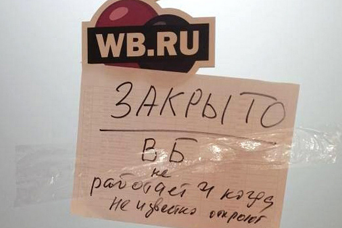 Сотрудники корпорации вывешивают на дверях своих помещений объявления: «По всей стране закрылись пункты выдачи в знак протеста против новых правил маркетплейса. В связи с тем, что компания Wildberries не выплачивает зарплату сотрудникам, пункт выдачи заказов закрыт». Фотографию с такой надписью на двери Wildberries в Шушарах заметил читатель «Бумаги».