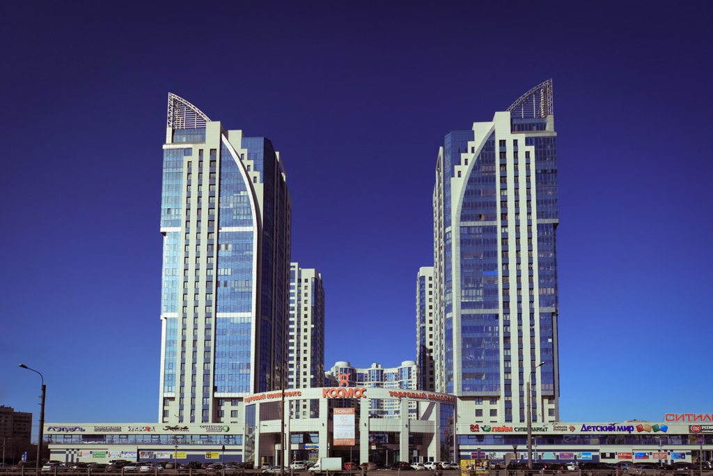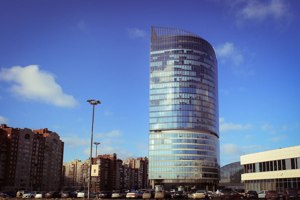 В 2006 году на улице Савушкина — прямо напротив главного входа в Парк 300-летия — началась новая стройка. Строили многофункциональный комплекс, включавший в себя торговый и бизнес-центры. Планы у застройщика были большие: по уверениям, башня бизнес-центра должна была стать выше даже главной городской доминанты — Петропавловского собора. Архитекторами комплекса выступили Евгений Логвинов и Святослав Гайкович.