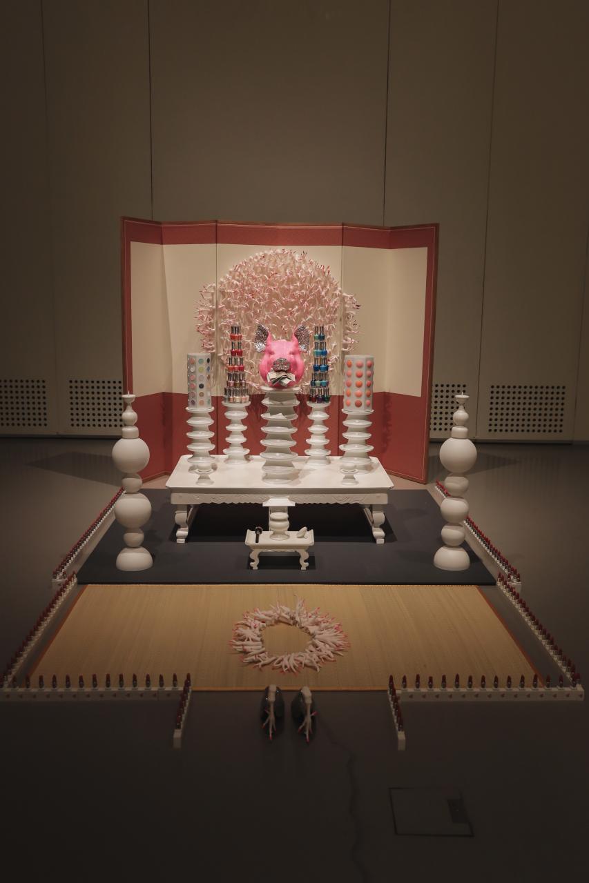 Свиная голова в стразах и забор из губных помад — как в Эрмитаже монтировали инсталляцию южнокорейской художницы