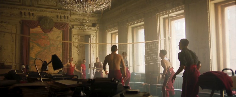 В Белом зале чекисты играют в футбол, занимаются самодеятельностью и разбирают расстрельные папки. Пытают жертв в хозяйском кабинете, а диалектику следственной работы капитану Волконогову (Юре Борисову) его начальник майор Гвоздев (Александр Яценко) объясняет в зимнем саду.
