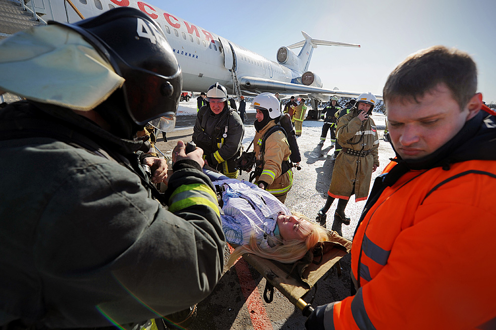 3 апреля в аэропорту «Пулково» прошли сезонные учения. По легенде, у одного из самолетов прямо перед посадкой загорелся двигатель. Пожарные доблестно тушили воздушное судно и оперативно эвакуировали якобы пострадавших пассажиров. На то, чтобы устранить последствия импровизированной чрезвычайной ситуации, у спасателей ушло 14 минут.