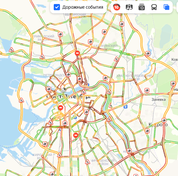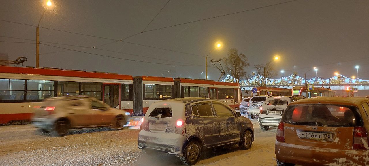 Пробки в городе утром 12 декабря достигли 9 баллов. В течение всего дня ситуациях на дорогах оставалась тяжелой и достигла пика после 18 часов, когда «Яндекс Карты» показали 10 баллов. Петербуржцы иронично поздравляли друг друга «с десяточкой».