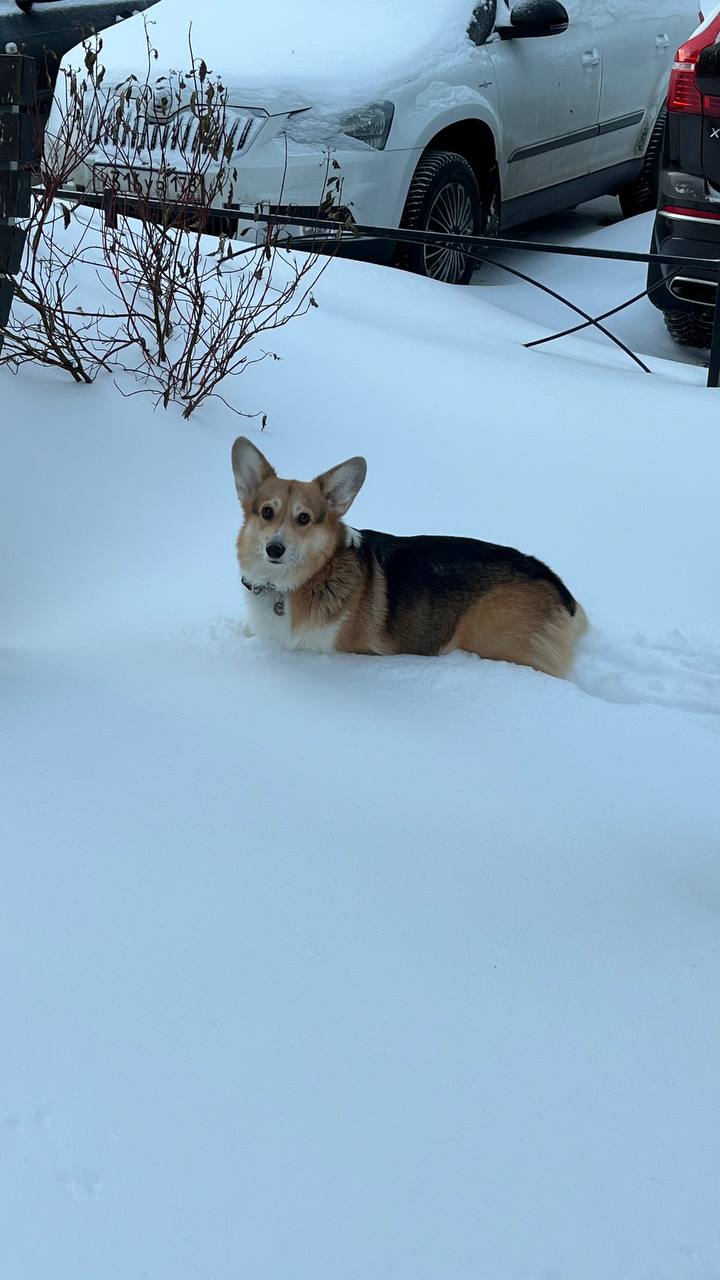 Есть горожане, которые не возмущены горами снега — например, этот прекрасный корги из Клуба друзей «Бумаги».