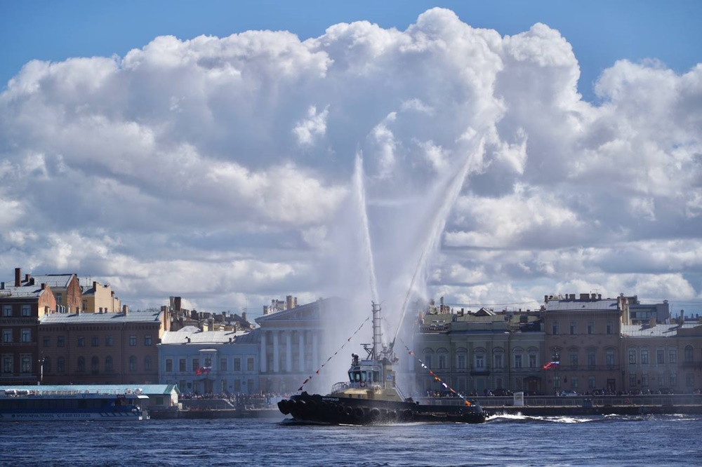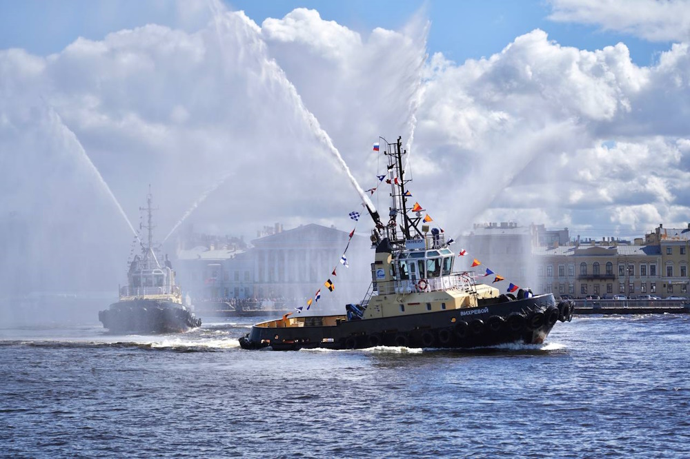В акватории Невы устроили «Вальс буксиров». Посмотрите, как выглядело водное шоу