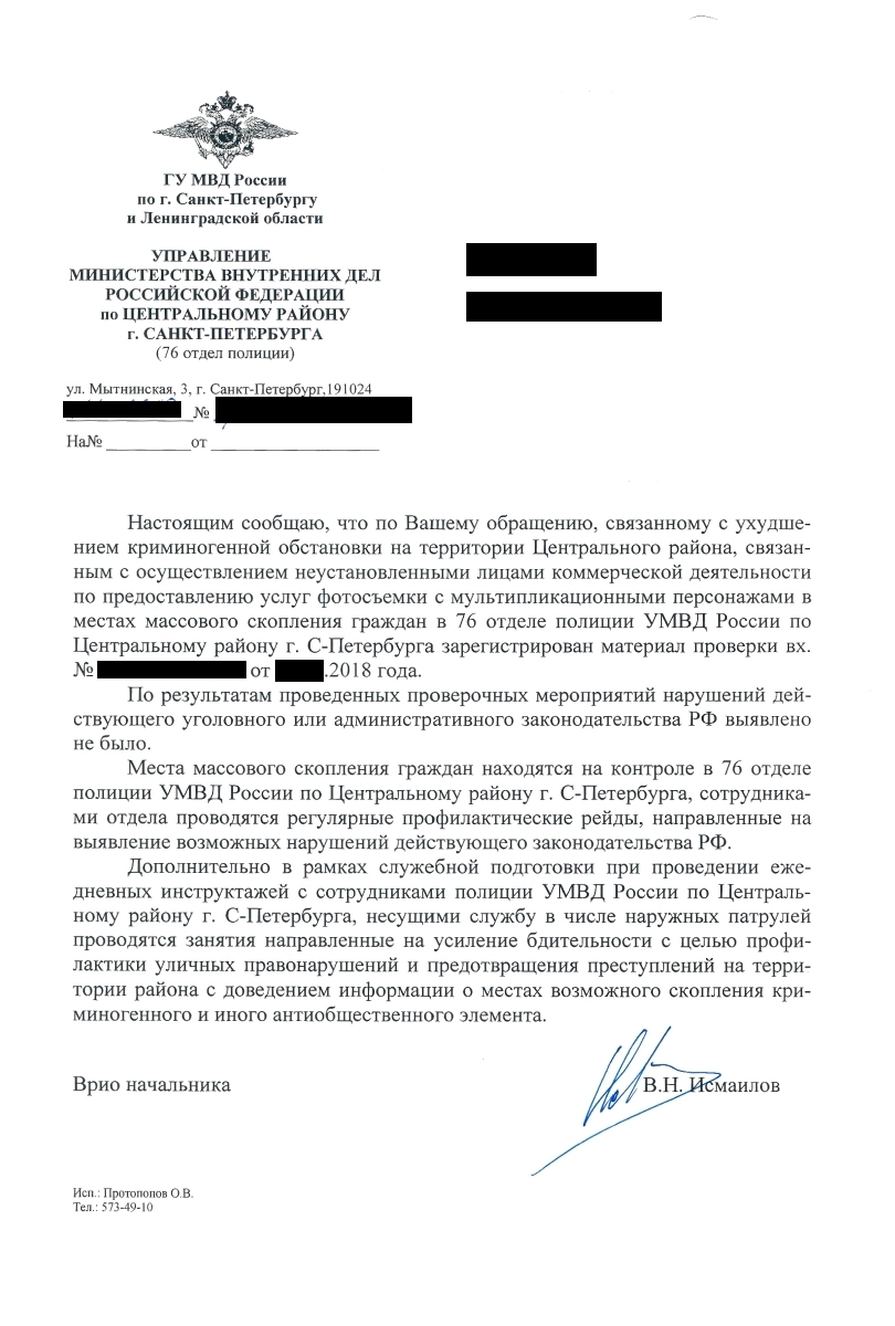 Пользователь «Пикабу» рассказал, что еще в 2016 году жаловался на аниматоров в 76-й отдел полиции. По его словам, тогда в полиции сообщили, что признаков уголовного или административного правонарушения не было обнаружено.
