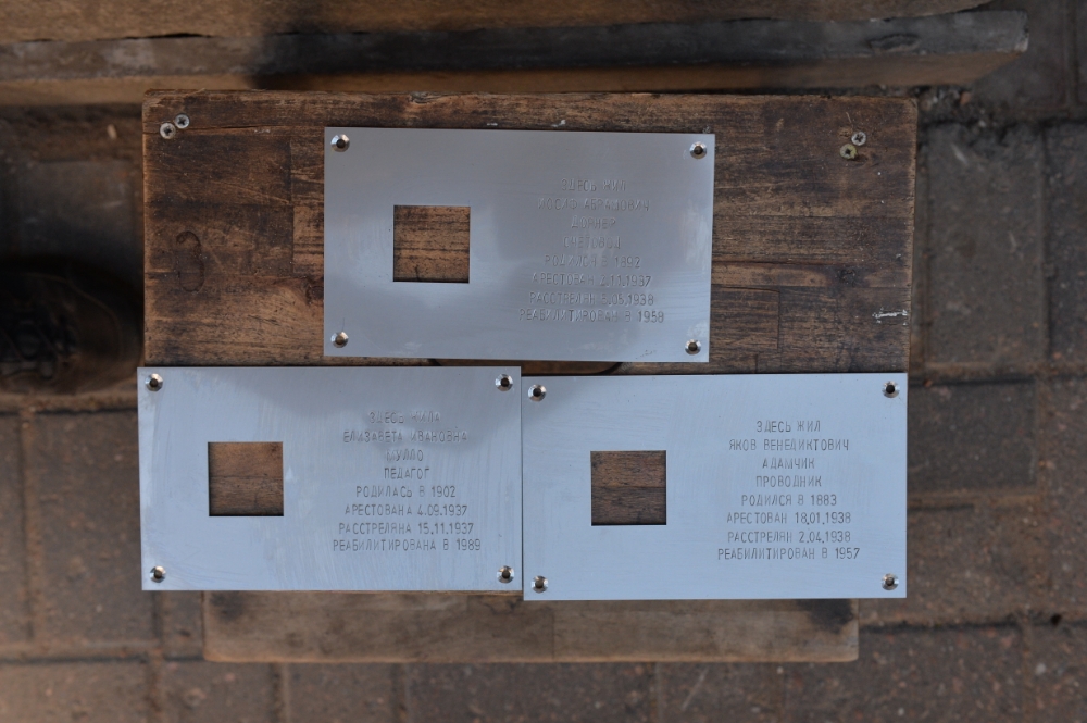 публикует фотографии установки новых табличек «Последнего адреса», в которой приняли участие потомки репрессированных.