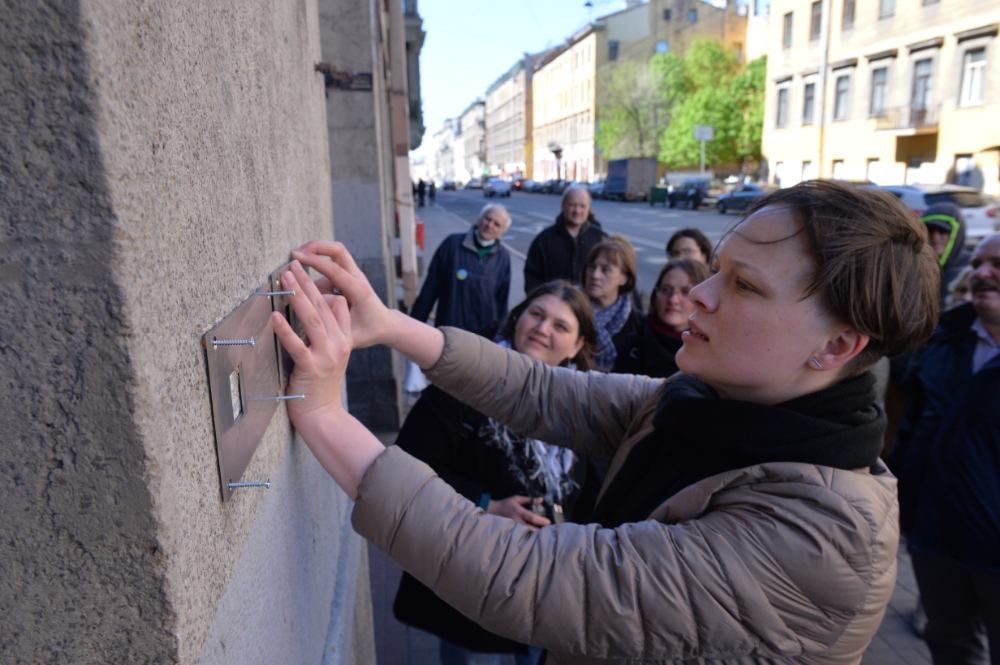 В центре Петербурга установили четыре новые таблички «Последнего адреса». Показываем акцию памяти