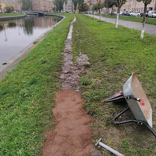 В октябре мы сделали дорожку на набережной от Банного до Бердова моста. Активные участники нашего сообщества скинулись по 200–300 рублей и заплатили около 8 тысяч рублей за машину гранитной крошки. Приехал грузовик, мы взяли тачки и лопаты и сами эту крошку раскидали.