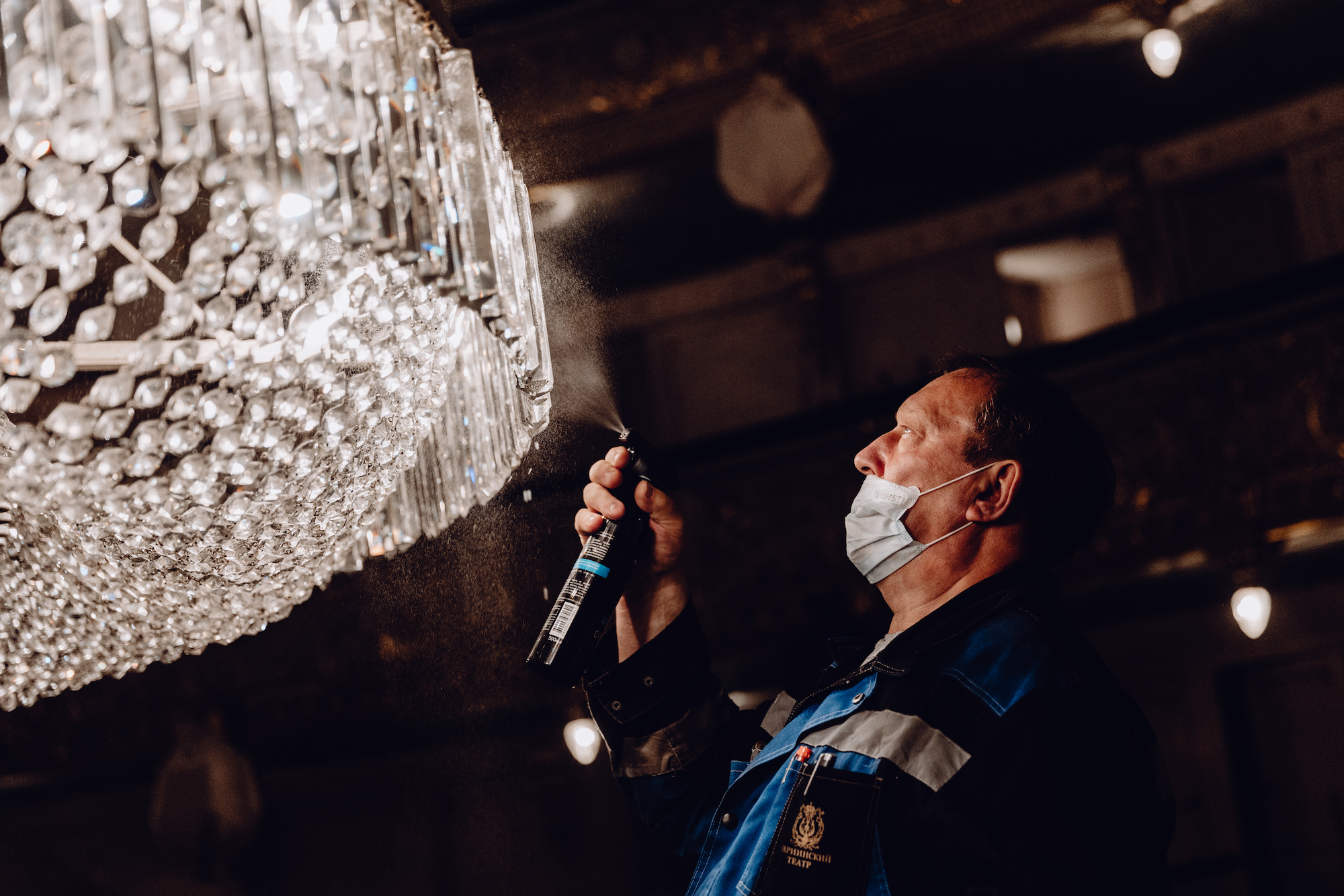 В Мариинском театре помыли огромную трехъярусную люстру, созданную в 1860 году и до сих пор освещающую историческую сцену. Люстра весит 2 тонны и состоит из 23 тысяч хрустальных подвесок и 230 лампочек — каждую деталь сотрудники чистили вручную.