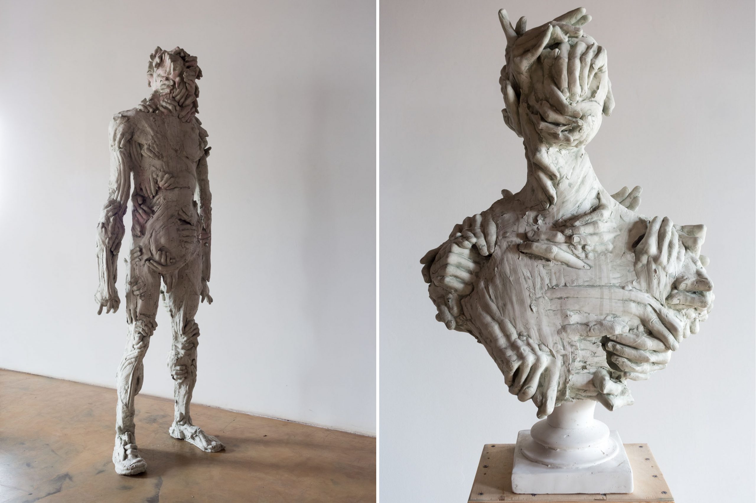 Архитектура экспозиции не предполагает жесткого тематического разделения. Например, надувную скульптуру «Авокадо» Максима Свищева можно отнести как к «Диалогу с материалом», так и к разделу, который посвящен самоцентризму поколения. Проект Егора Крафта «Контент-ориентированные исследования» в предпоследней по счету комнате вообще довольно сложно вписать в концепцию какого-либо раздела. Художник использует машинное обучение для анализа и дополнения античных скульптур с утраченными фрагментами — например, без носа.