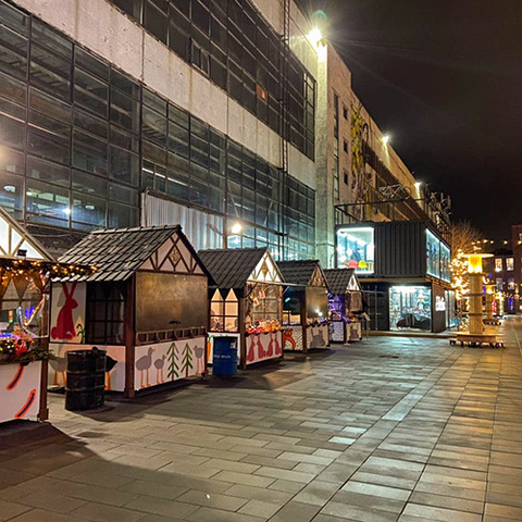 В пространстве «Севкабель Порт» работает новогодняя уличная аллея с домиками, где можно купить горячую еду, елочные игрушки, посуду и подарки. Резидентами маркета стали Pop ceramics, инклюзивные мастерские «Простые вещи», производитель эфирных масел Freedom aroma и другие проекты. Оформлением домиков занимались петербургские уличные художники (например, Денис Турбен), а неподалеку от маркета работает «Каток у моря». Обратить внимание стоит и на инсталляцию Arrival от арт-дуэта 404.Zero. Для нее трансформировали Кабельный цех: работа представляет собой лазерный луч, который проходит через металлические рамы.