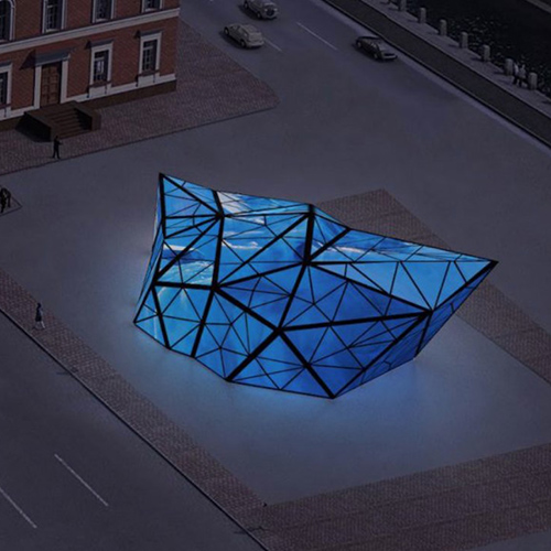 ArtAntarctica — новая уличная выставка «Манежа», расположенная на площади Труда. Это масштабная мэппинг-инсталляция в виде светящегося айсберга, посвященная открытию и исследованию Арктики и Антарктики, кругосветным путешествиям и роли Петербурга в географической науке. Выставка состоит из нескольких частей: мультимедийного образа айсберга, исторического фильма об освоении Антарктиды и видеоперформансов. Их подготовили современные художники из России и других стран: турок Decol, француз Maotik, Павел Пепперштейн, Андрей Свибович и другие авторы. Ознакомиться с выставкой можно в темное время суток — днем мультимедийный контент просто не виден.