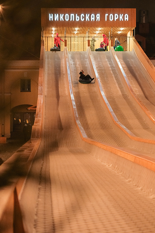 В «Никольских рядах» открывается пространство с 70-метровой горкой, ярмаркой и смотровой площадкой. Вот как оно выглядит