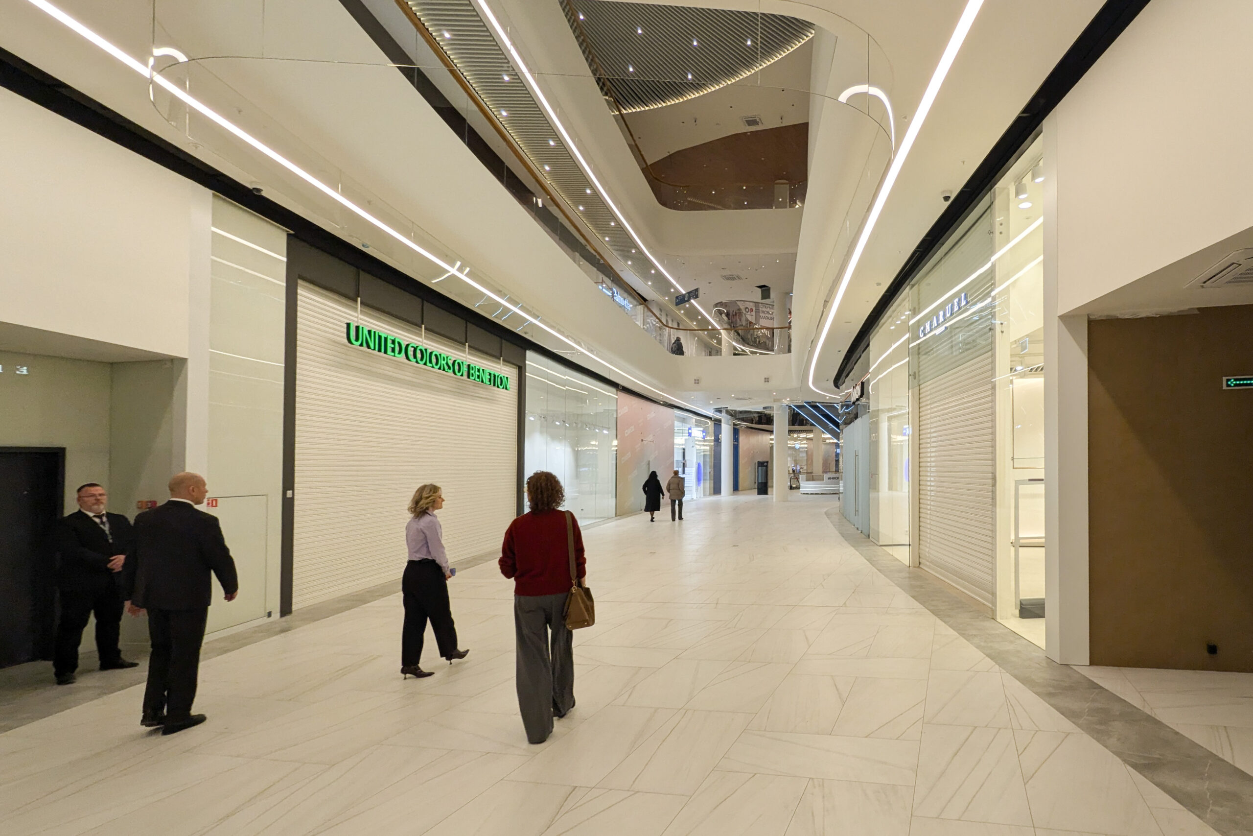 Сроки строительства несколько раз продлевали, а дату открытия уже переносили: сначала запуск планировали на август 2025-го, затем — на 27 ноября. На пресс-показе центра выяснилось, что и эта дата не окончательная. Утром 27 ноября корреспондент «Бумаги» убедился — торговый центр закрыт, войти внутрь нельзя.