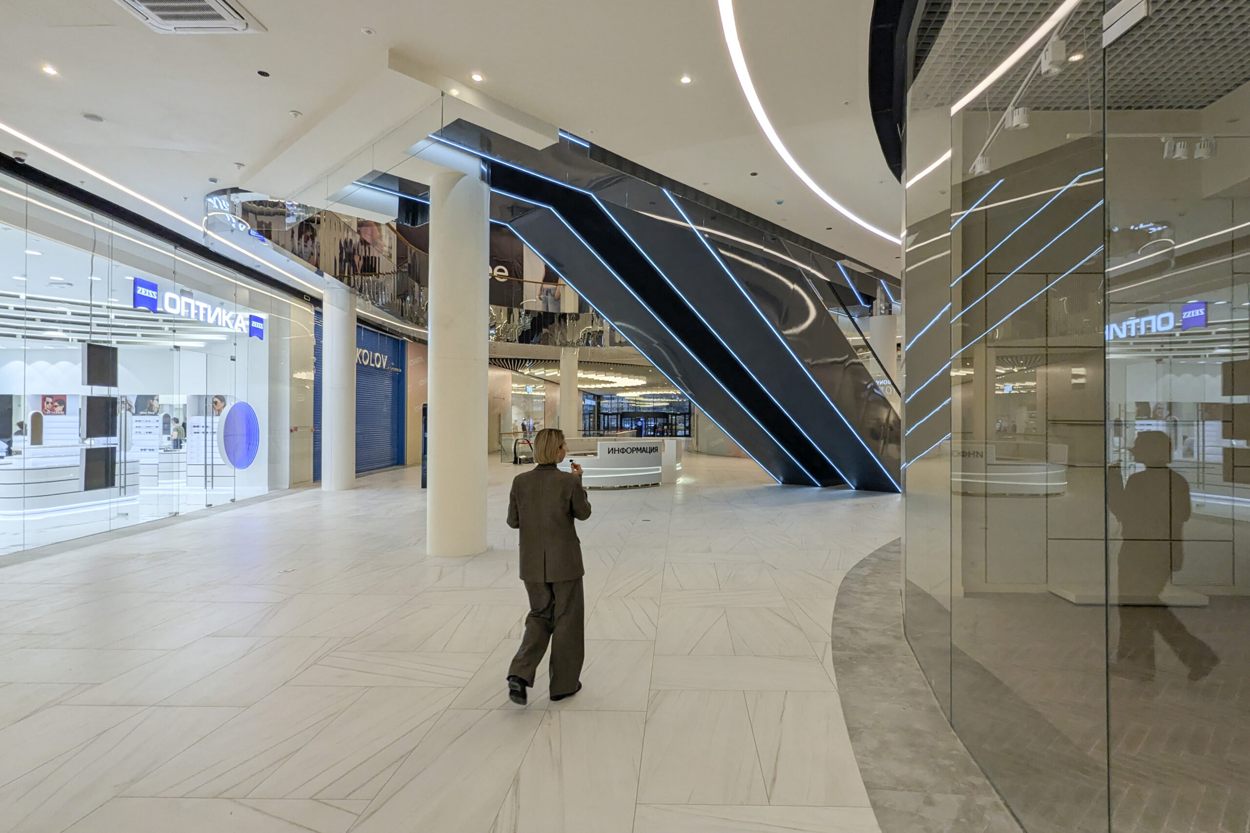 «Мы хотели создать мягкий и воздушный интерьер, где каждый может немного раствориться. Это видно в архитектуре здания: плавные формы, натуральные материалы и различные акценты. [Например,] в главном атриуме у нас есть акценты в виде прекрасного лифта и люстры, а в определенные часы дня вы можете заметить, как переливаются ламели на фасаде. Еще у нас есть интересный зеркальный атриум: думаю, многим он понравится», — рассказала представительница Blank Architects Валерия Кузнецова.