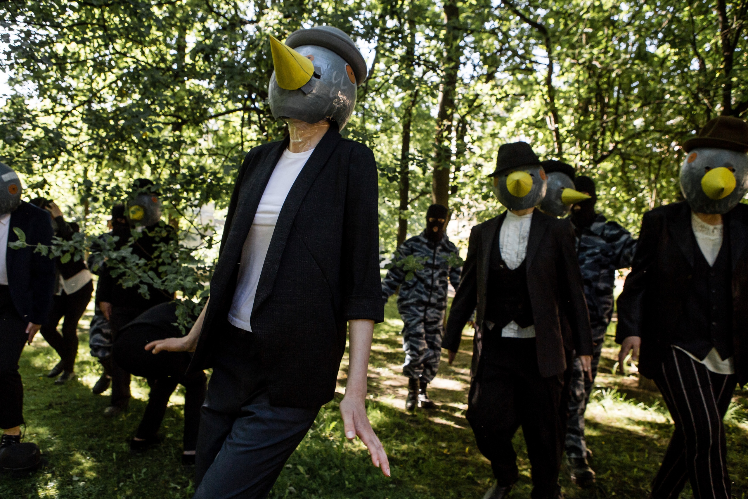 Или вот: есть такой актер Малого драматического театра — Евгений Санников, который неоднократно был задействован в наших постановках. В одной из них он играл на трубе, практически полностью раздетый, на подоконнике открытого окна в доме на Литейном проспекте. Тема «раздетости» некоего молодого человека была взята нами из записных книжек Хармса. Из них мы узнали, что он сам имел такую привычку — загорать на подоконнике. При всей своей странности, она тоже ломает логику обыденного восприятия. Важно отметить, что наша задача — сделать игру частью большой игры всего города, но не нарушить комфорт его жителей.