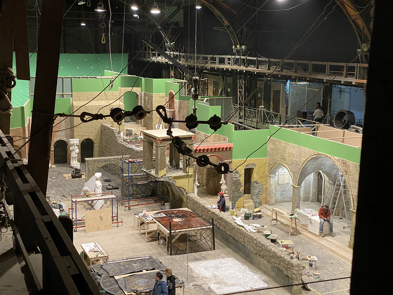 На «Ленфильме» задействуют три павильона — там возведут декорации древнего города Агариса, училища оруженосцев Лаик и палаццо Матильды и Альдо Раканов. Сейчас съемки проходят в павильоне, переделанном под палаццо, еще два пока достраиваются, рассказал продюсер Евгений Баранов.