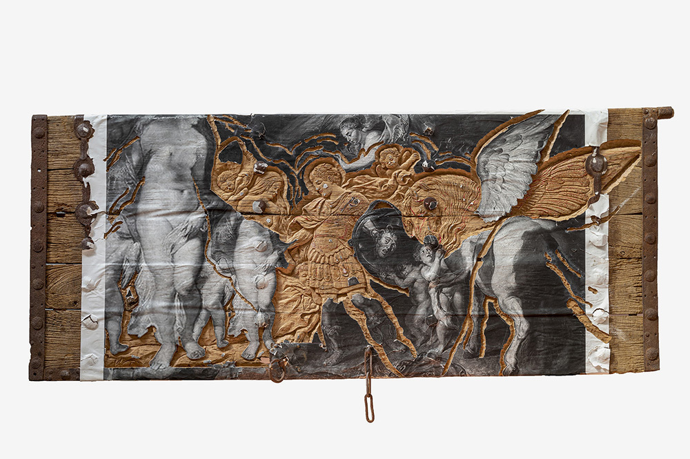 В Петербург приехали работы из нескольких серий, всего около 30 произведений. Большая часть была создана специально для Эрмитажа: примерно год назад художник приезжал осматривать коллекцию, это был его первый визит в Россию.